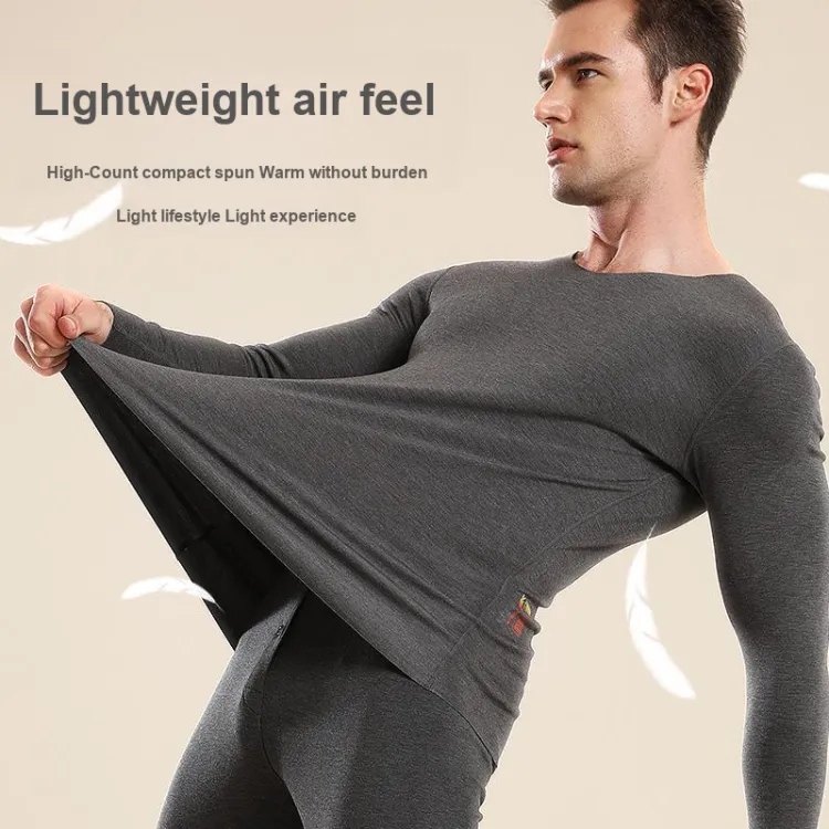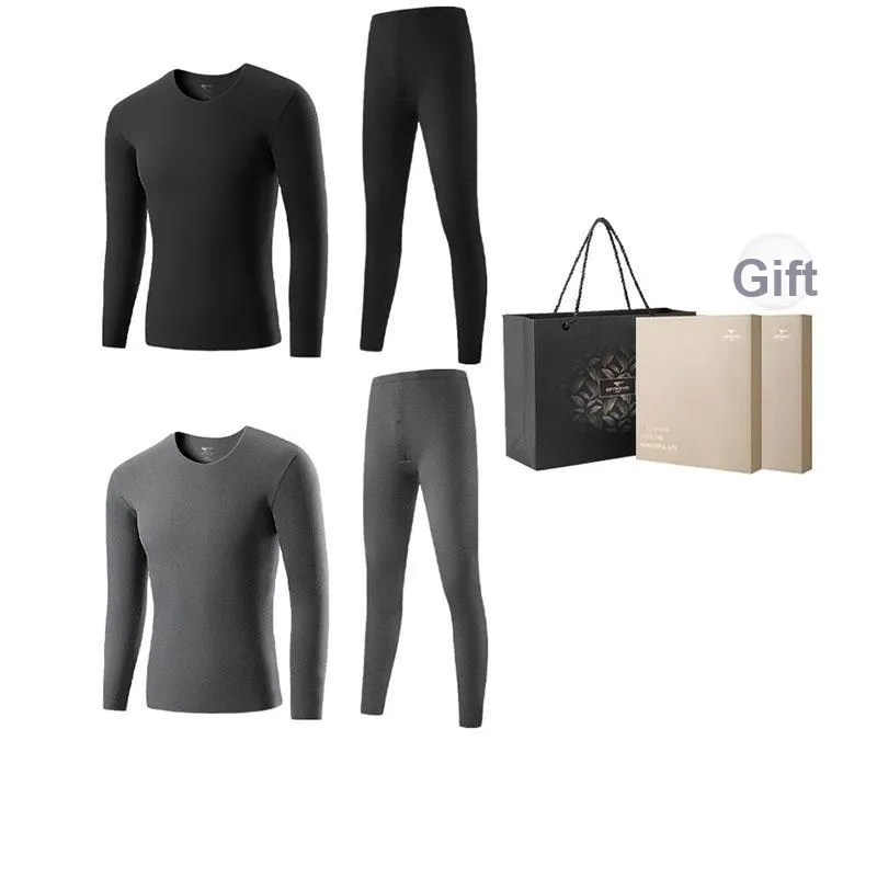 Цвет:2-Предметный комплект нижнего белья (Ночной черный + Серый ливень) Немецкий язык, флис, термический/бесшовный, антибактериальный/классический, круглый вырез