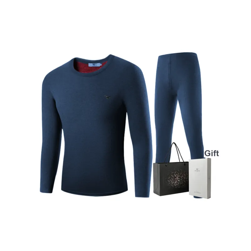 Цвет:Длинный рукав топ + штаны комплект одежды (темно-синий) с флисовой подкладкой / двухслойный утолщенный