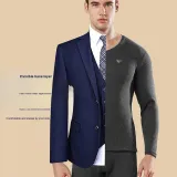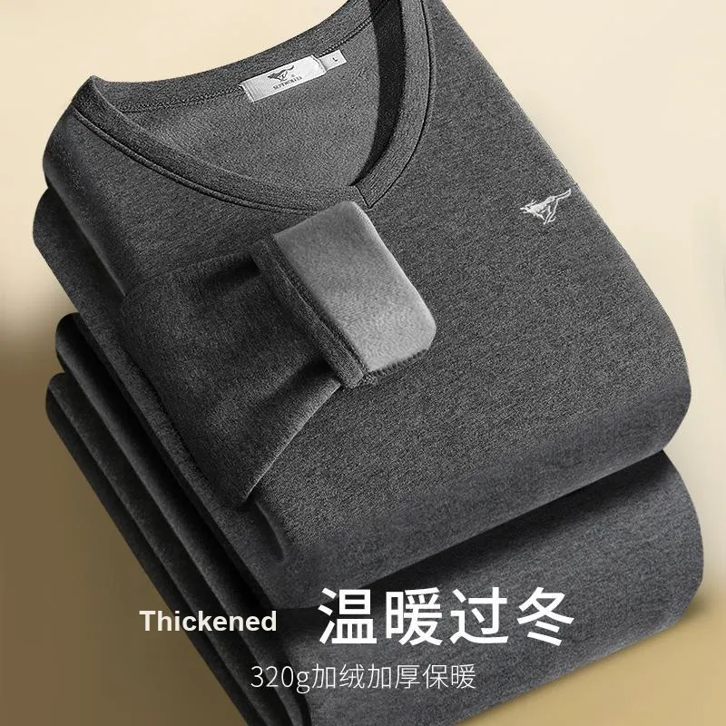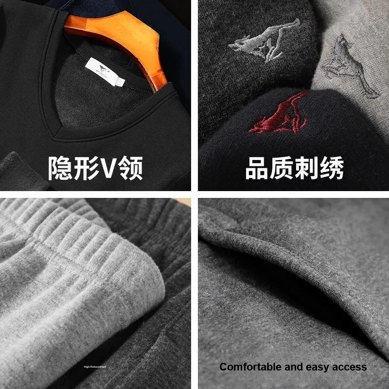 Мужской комплект с V-образным вырезом (темный фотиния серый) с кожезащитным хлопковым ощущением / двухслойный утолщенный / термический удерживающий и блокирующий температуру