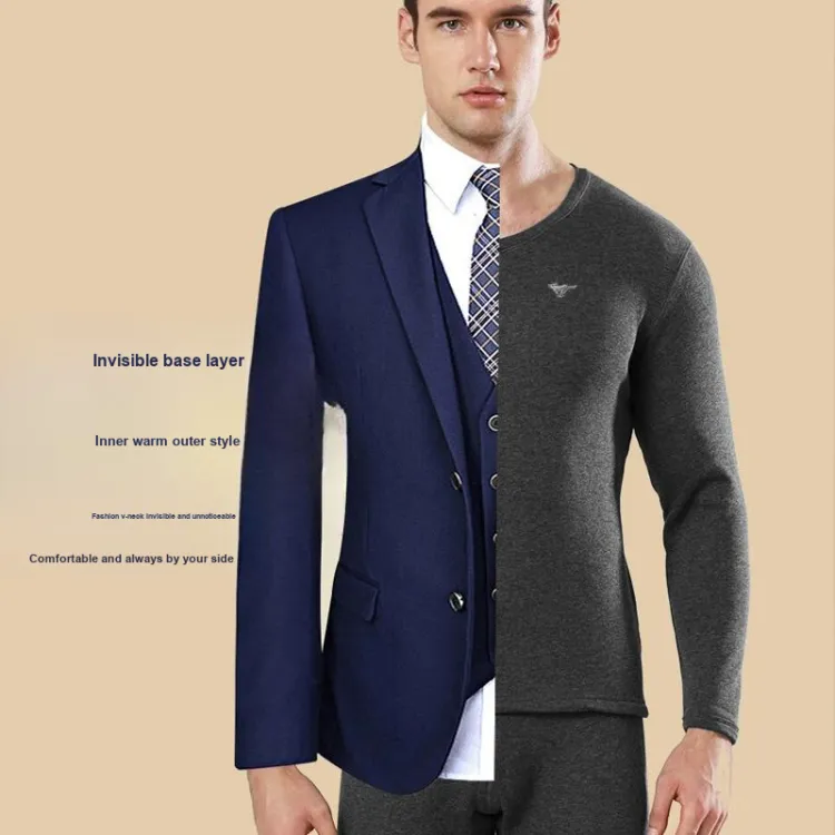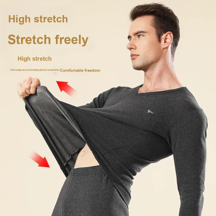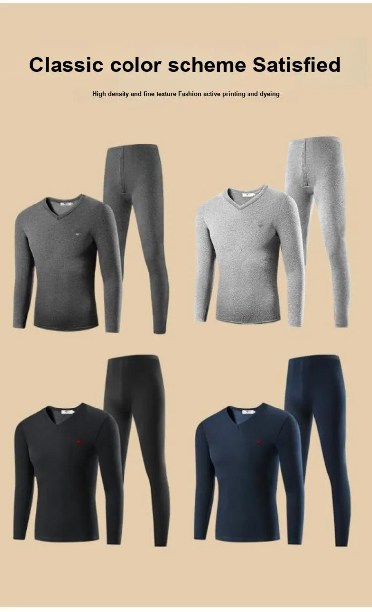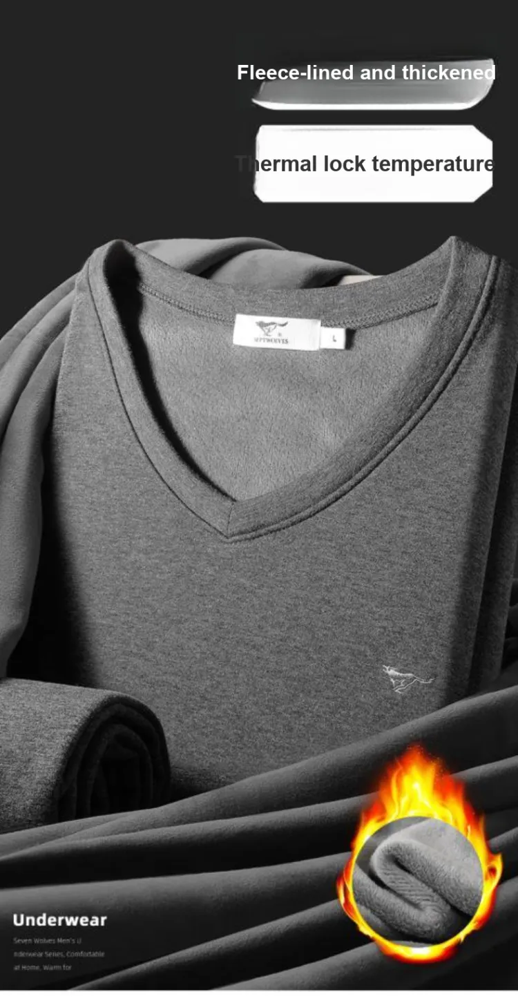 Цвет:Мужской комплект с V-образным вырезом (Светлый Фотиния Серый) Дружественный к коже хлопок/Двухслойный утолщенный/Термостат для удержания тепла и замковки температуры