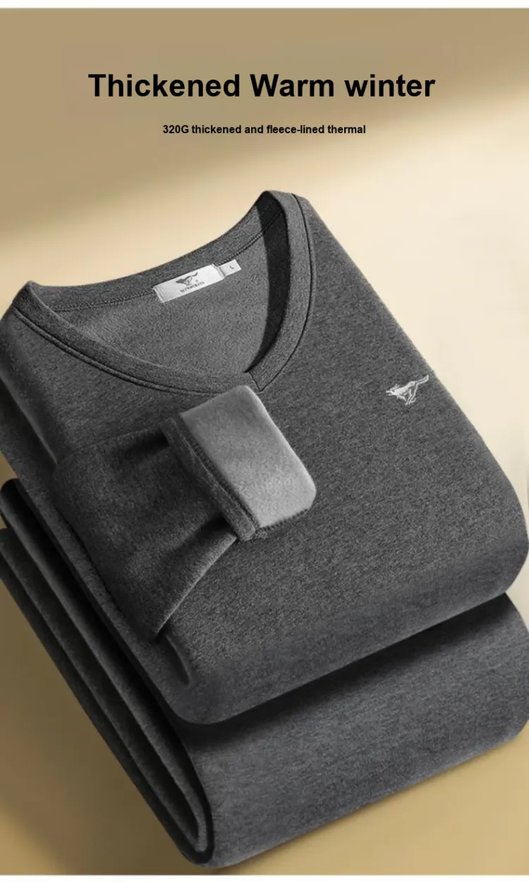 Мужской комплект с V-образным вырезом (Светлый Фотиния Серый) Дружественный к коже хлопок/Двухслойный утолщенный/Термостат для удержания тепла и замковки температуры