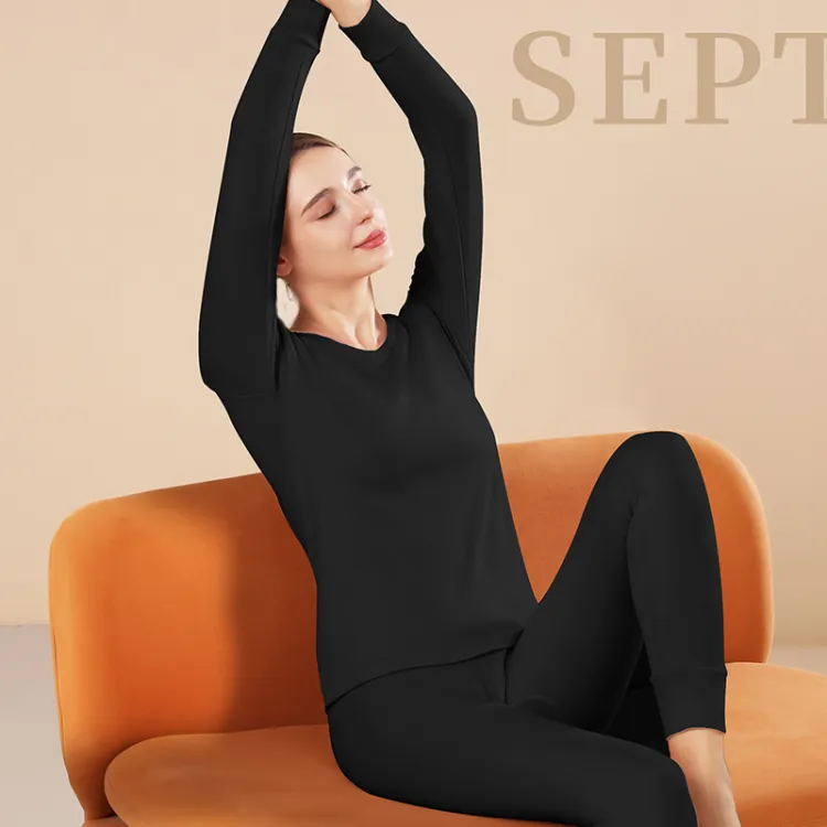 Женский комплект с круглым вырезом (черный), 100% хлопок, дружественный к коже / 3A, комфортный
