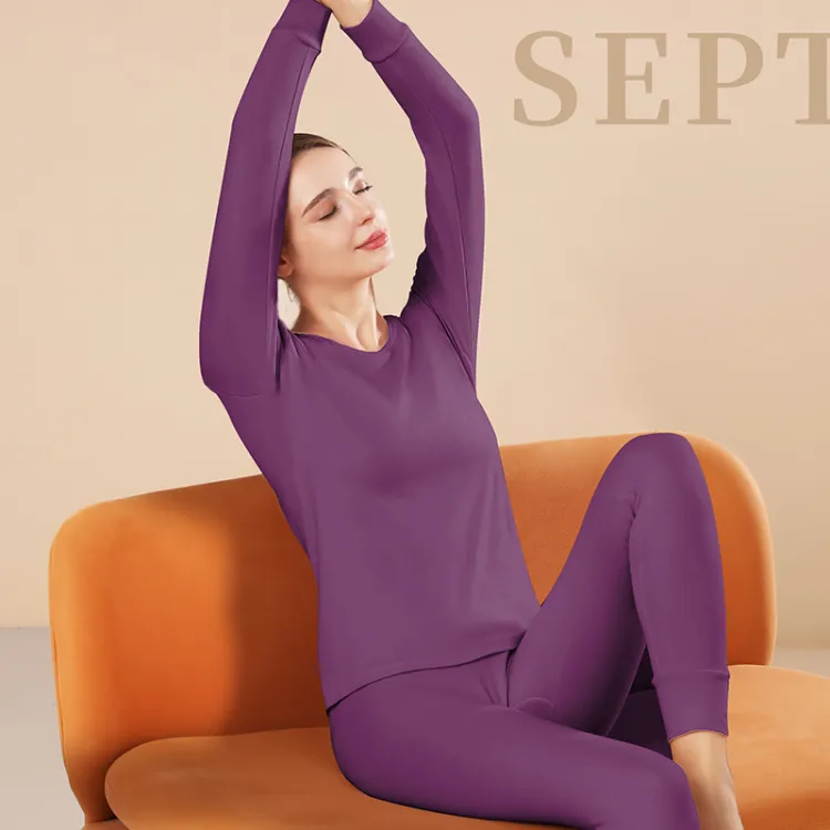 Женский комплект с круглым вырезом (темно-фиолетовый), 100% хлопок, безопасный для кожи / 3A, удобный