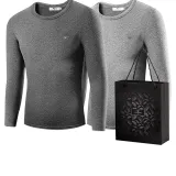 Набор из 2 шт (Темный конопляный серый + Светлый конопляный серый) тонкий теплый бархат / Удобный круглый вырез / Вышитая версия логотипа волка