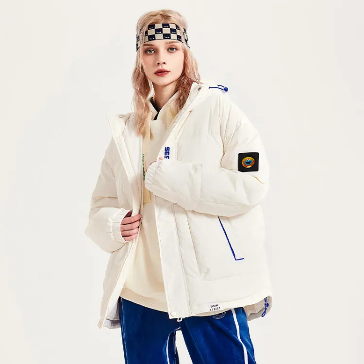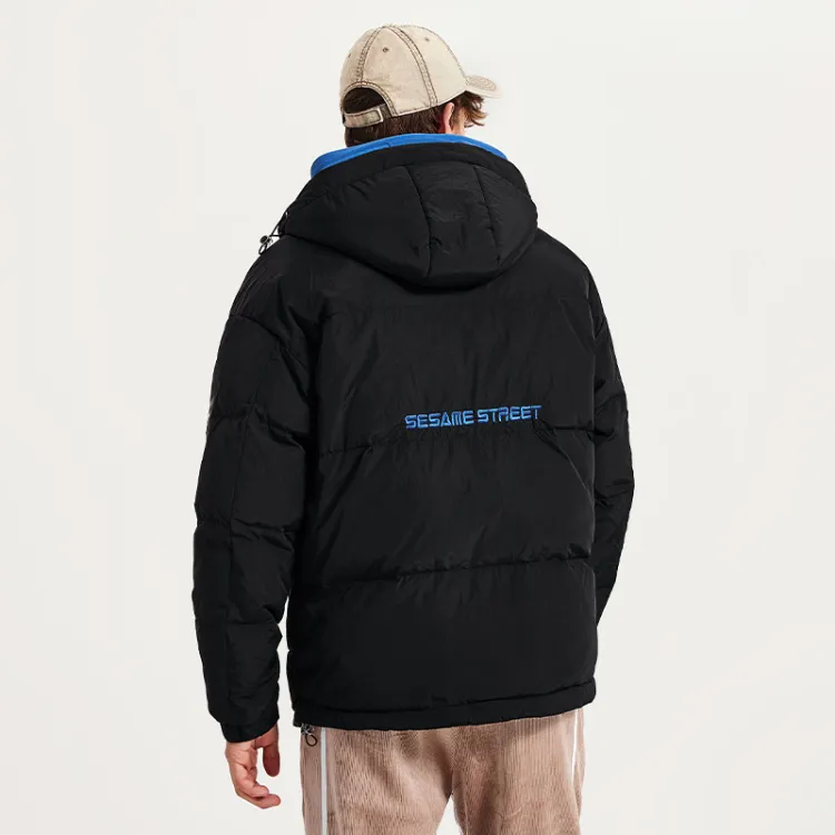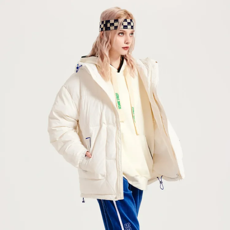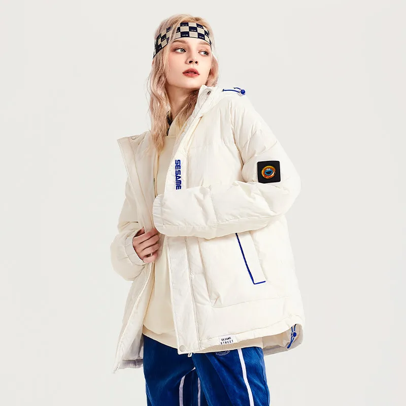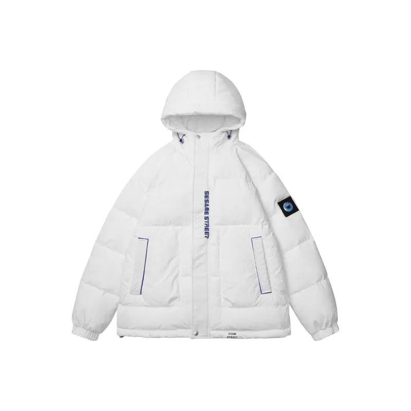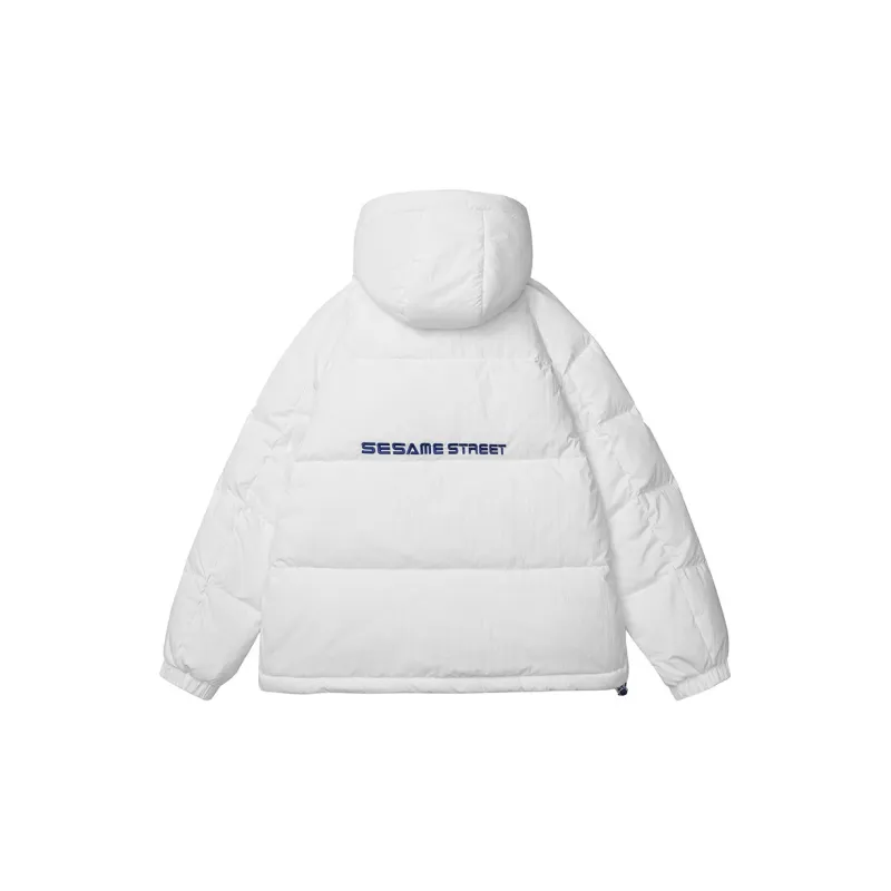 SESAME STREET Мультяшная буква Геометрический узор С капюшоном Свободный крой Утолщенный пуховик Унисекс