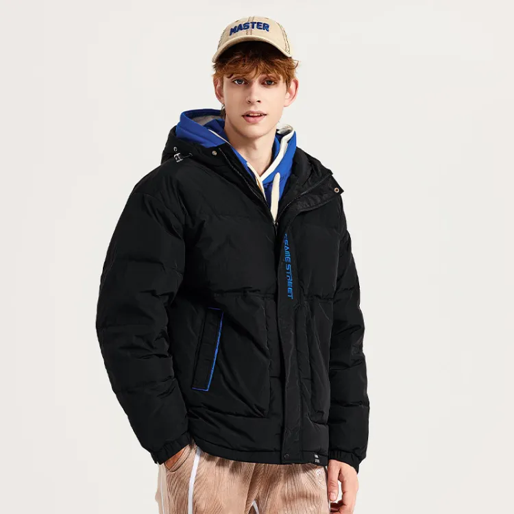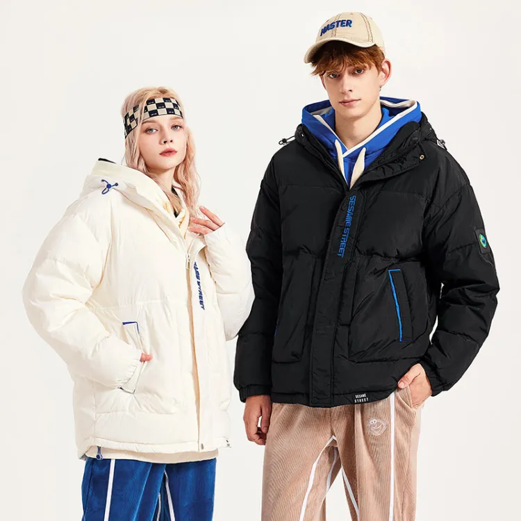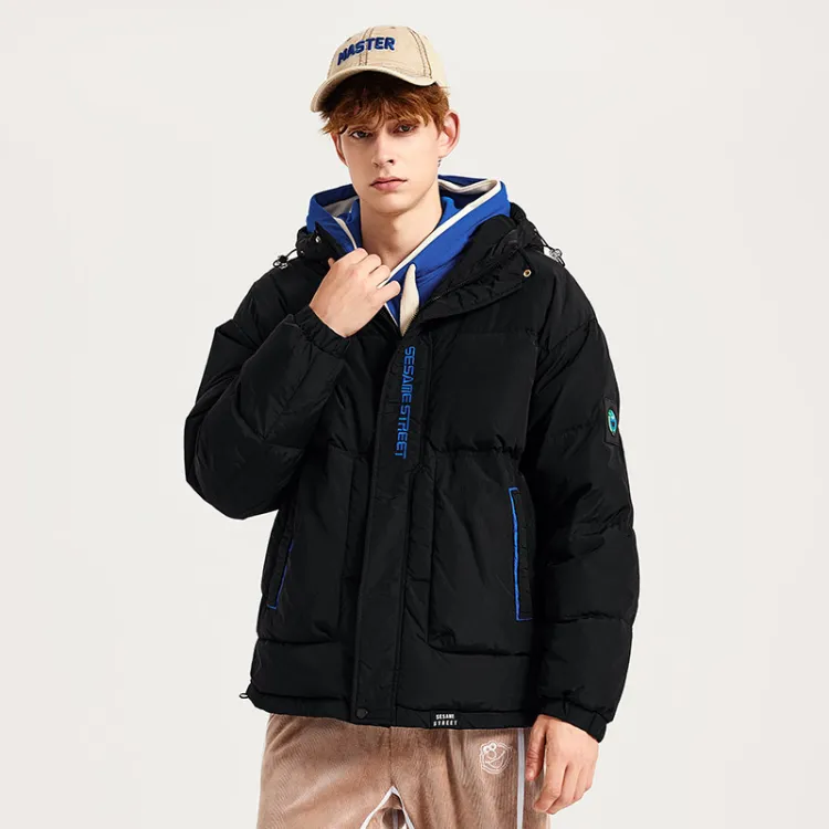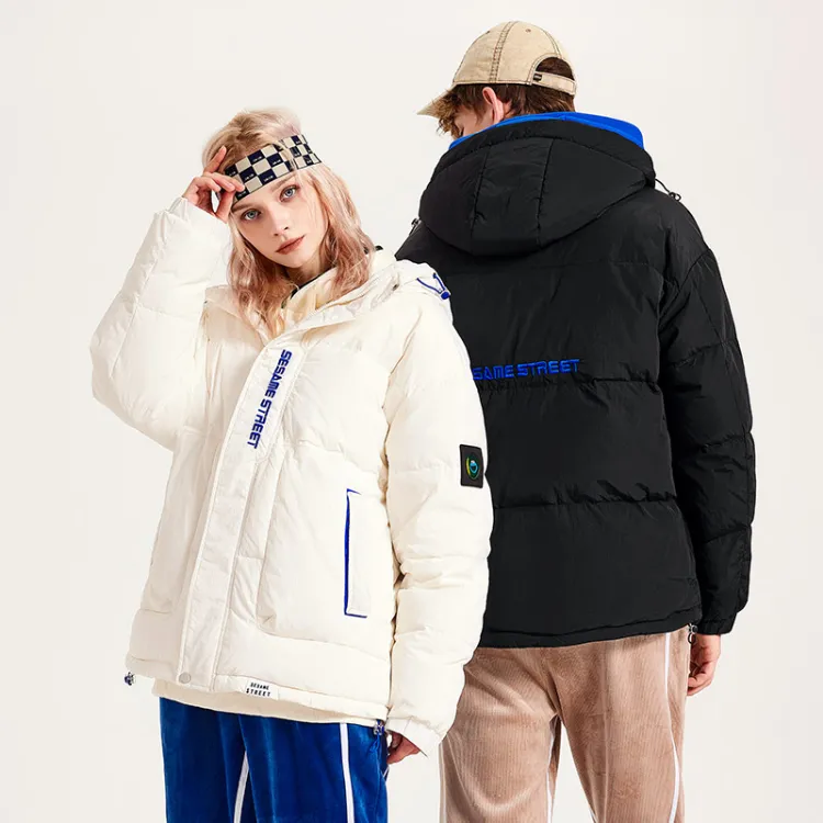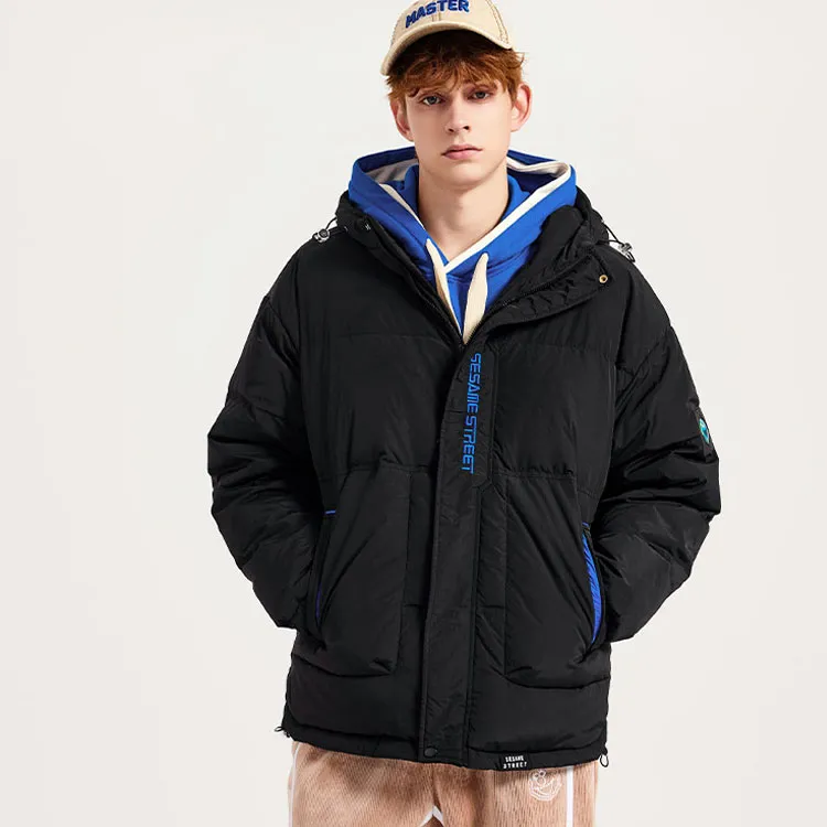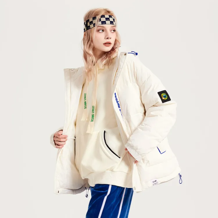 SESAME STREET Мультяшная буква Геометрический узор С капюшоном Свободный крой Утолщенный пуховик Унисекс