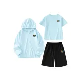 Одежда с защитой от солнца: 85,3% полиэстер, 14,7% эластан Футболка: 93% полиэстер, 7% эластан Брюки с защитой от комаров: 93% полиэстер, 7% эластан