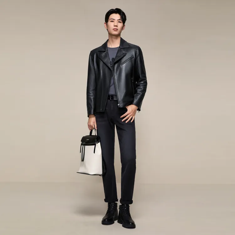 Seven Черные Мужские Кожаные Куртки