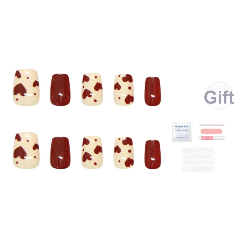 SEVERLAND False Nail Короткий Красный Сладкий стиль Сердце Jump Цвет
