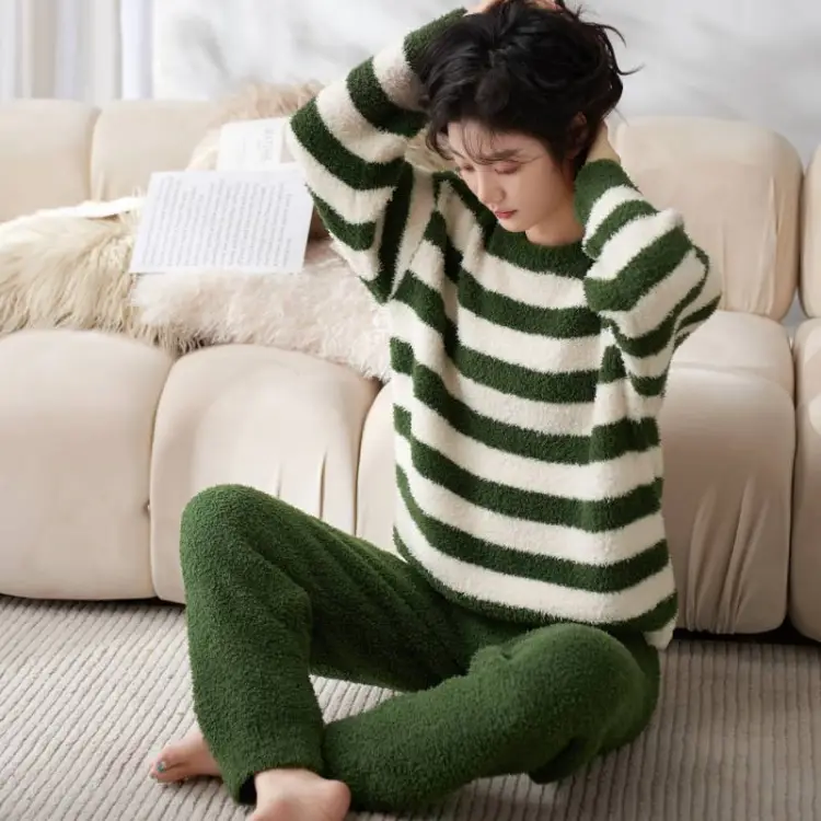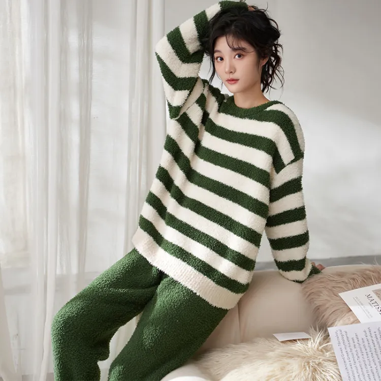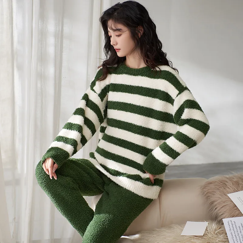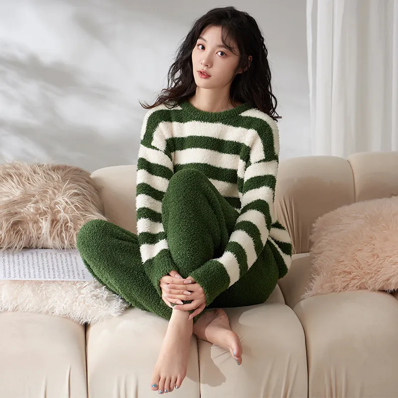 Sha Qian Пижамный комплект Осенний и Зимний Женский Зеленый