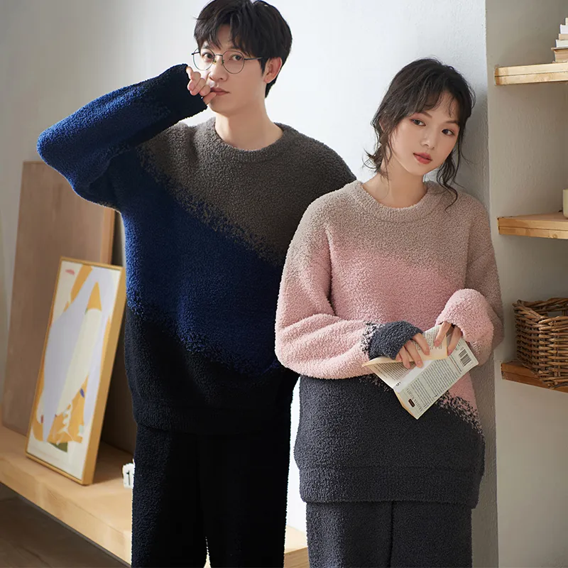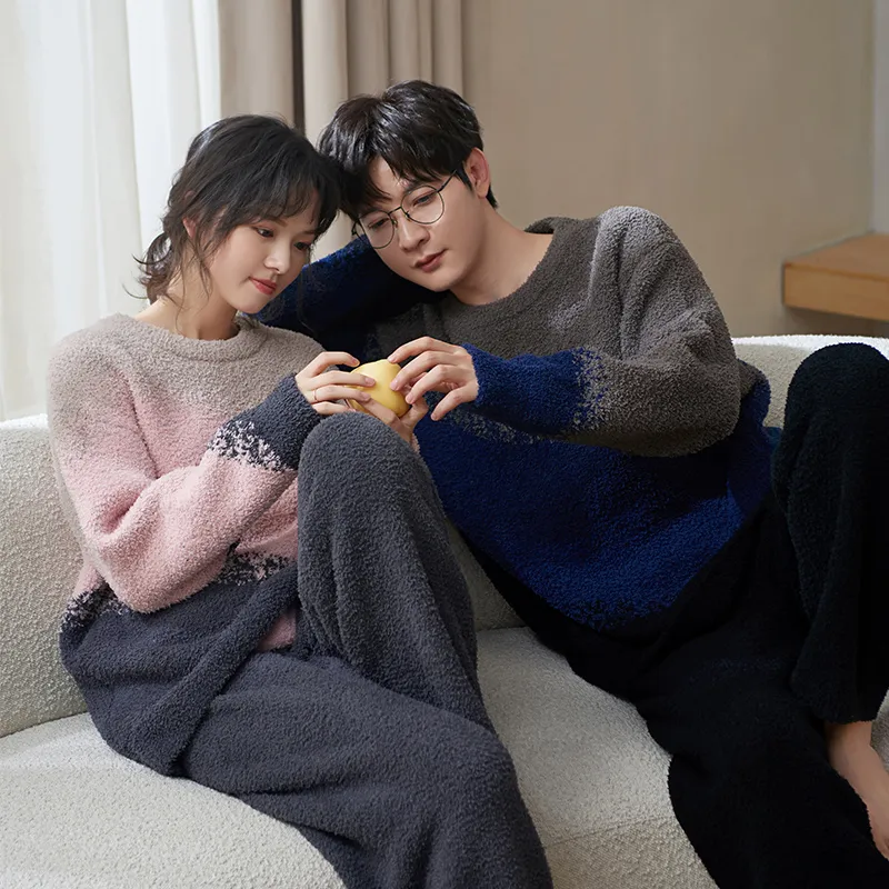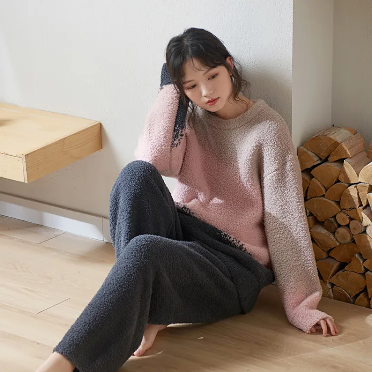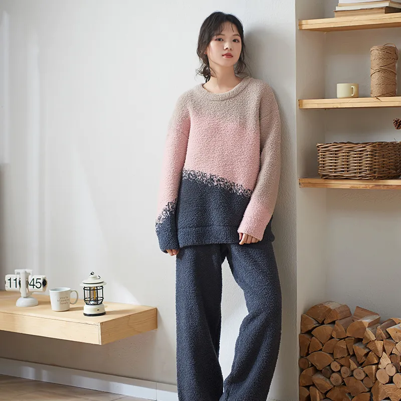 Sha Qian Пижамный комплект Осенний и Зимний Женский Розовый