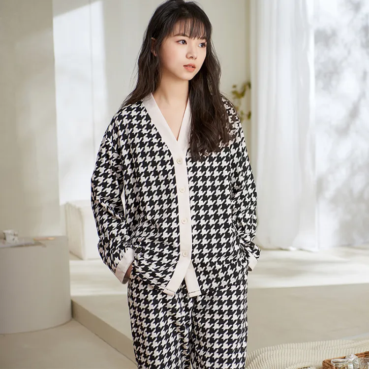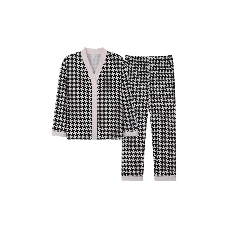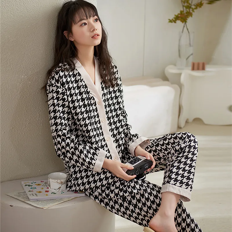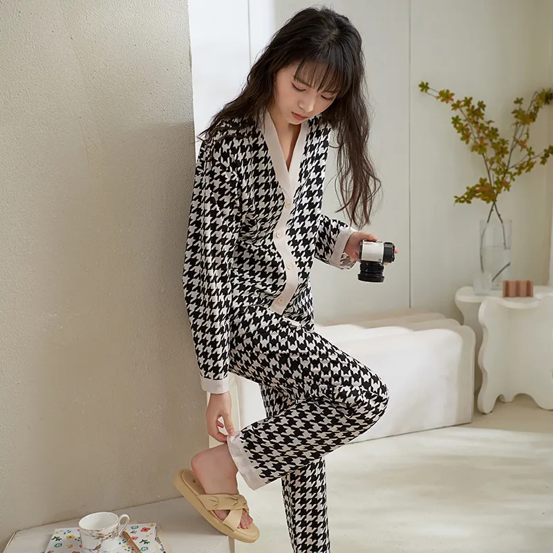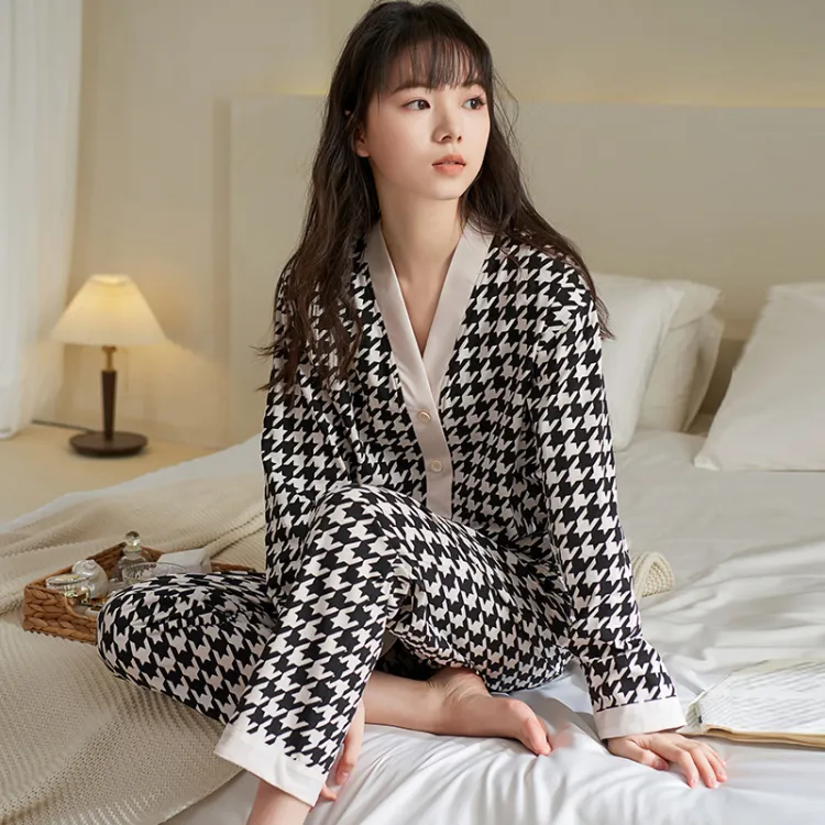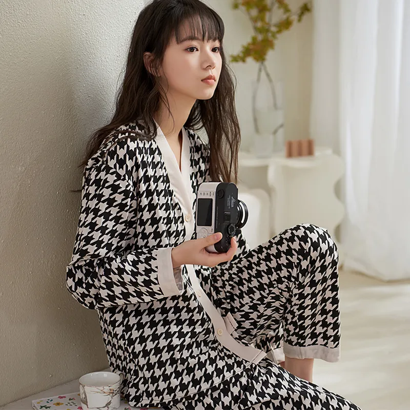 Sha Qian Пижамный комплект подходит для весны и осени женский черный