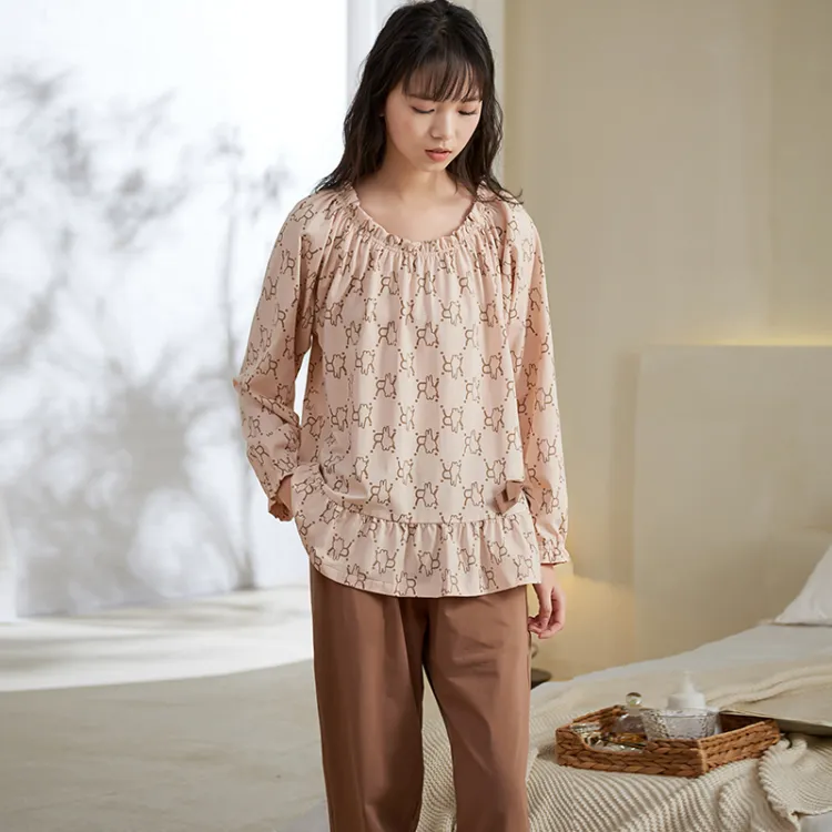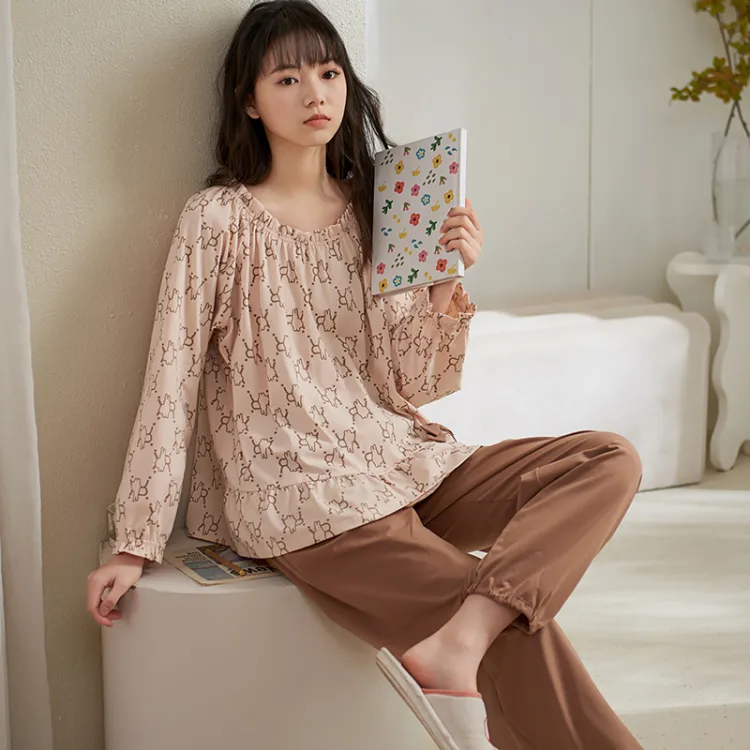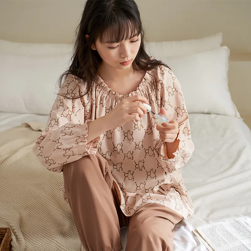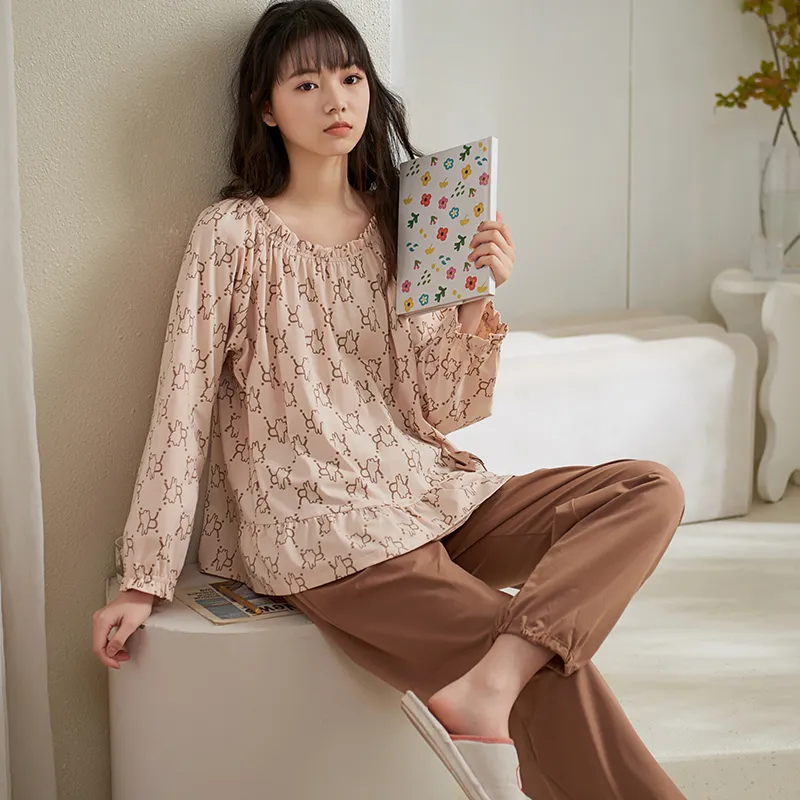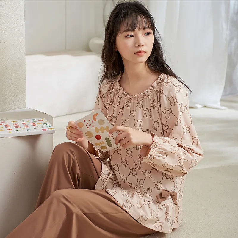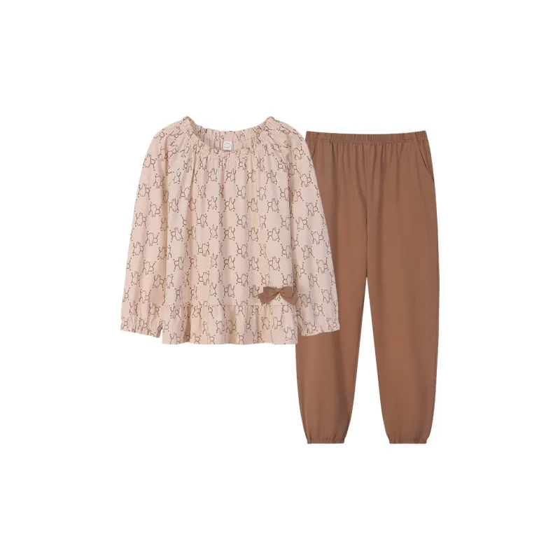 Sha Qian Пижамный комплект подходит для весны и осени женский молочно-чайный