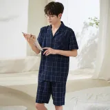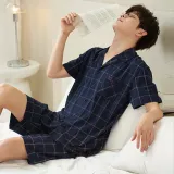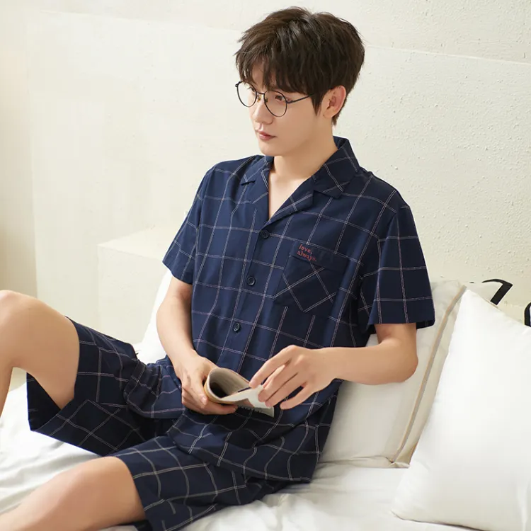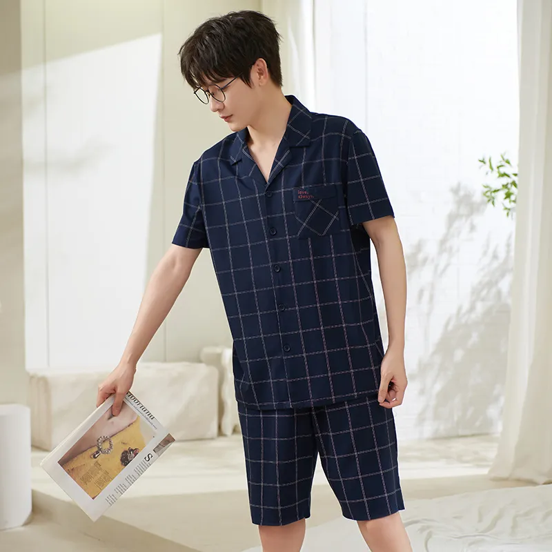 Sha Qian Пижамный комплект Летний Мужской Королевский синий