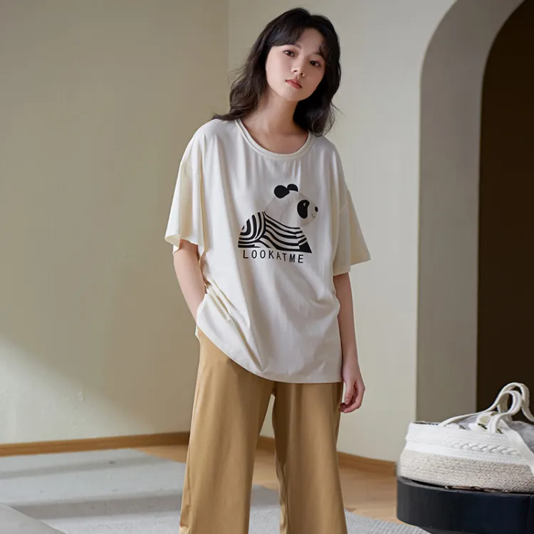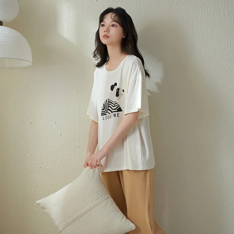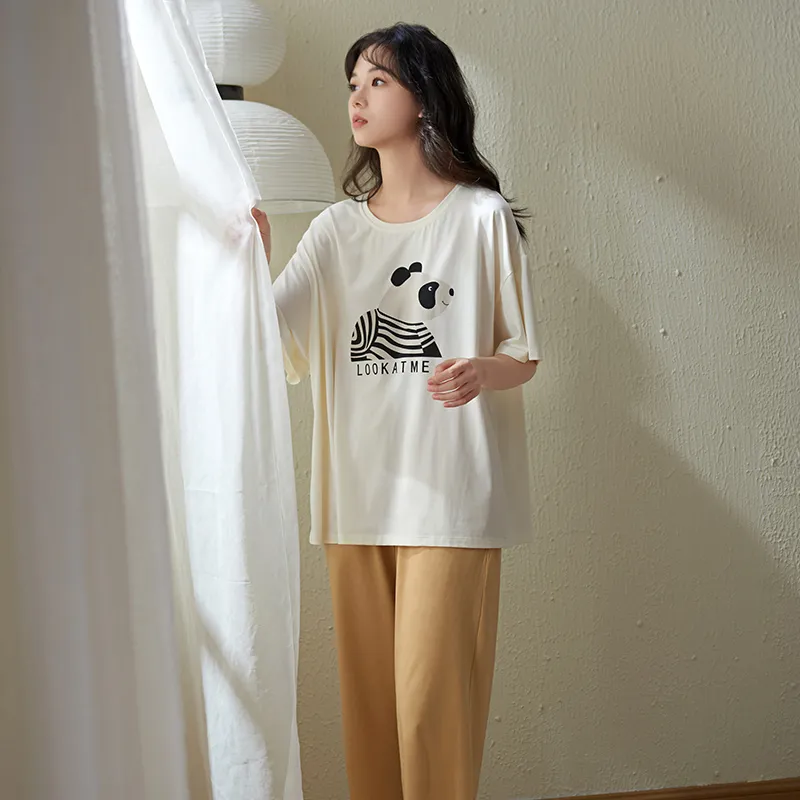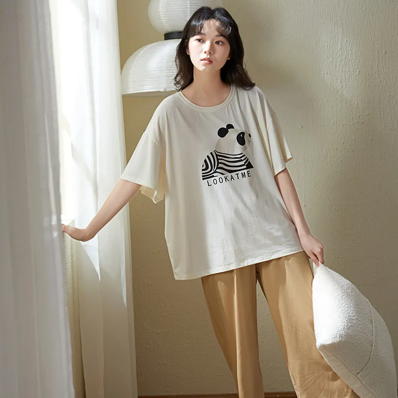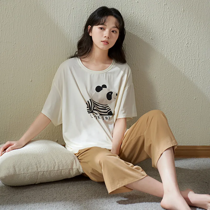 Sha Qian Пижамный комплект Летний Женский Айвори Белый
