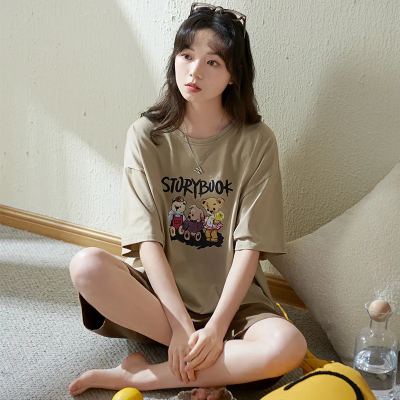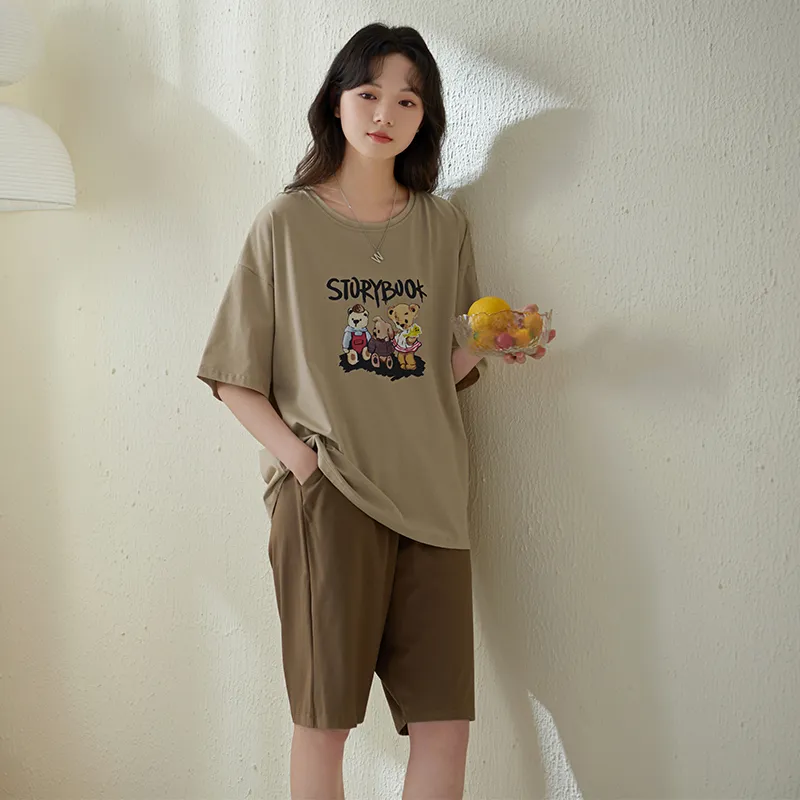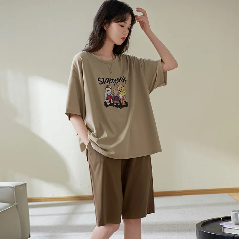 Sha Qian Пижамный комплект Летний Женский Хаки