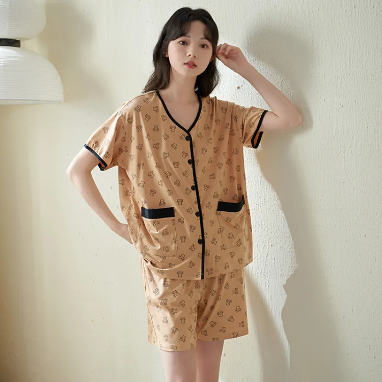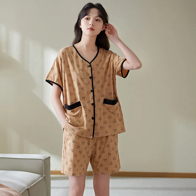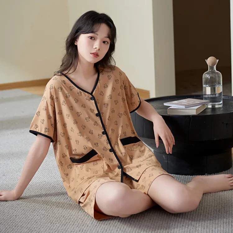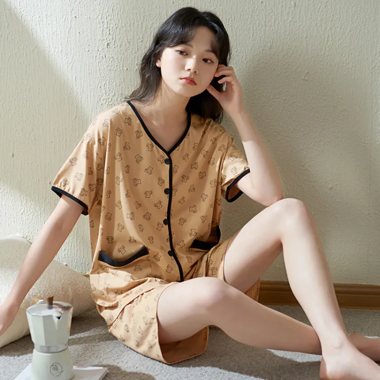 Sha Qian Пижамный комплект Летний Женский Хаки
