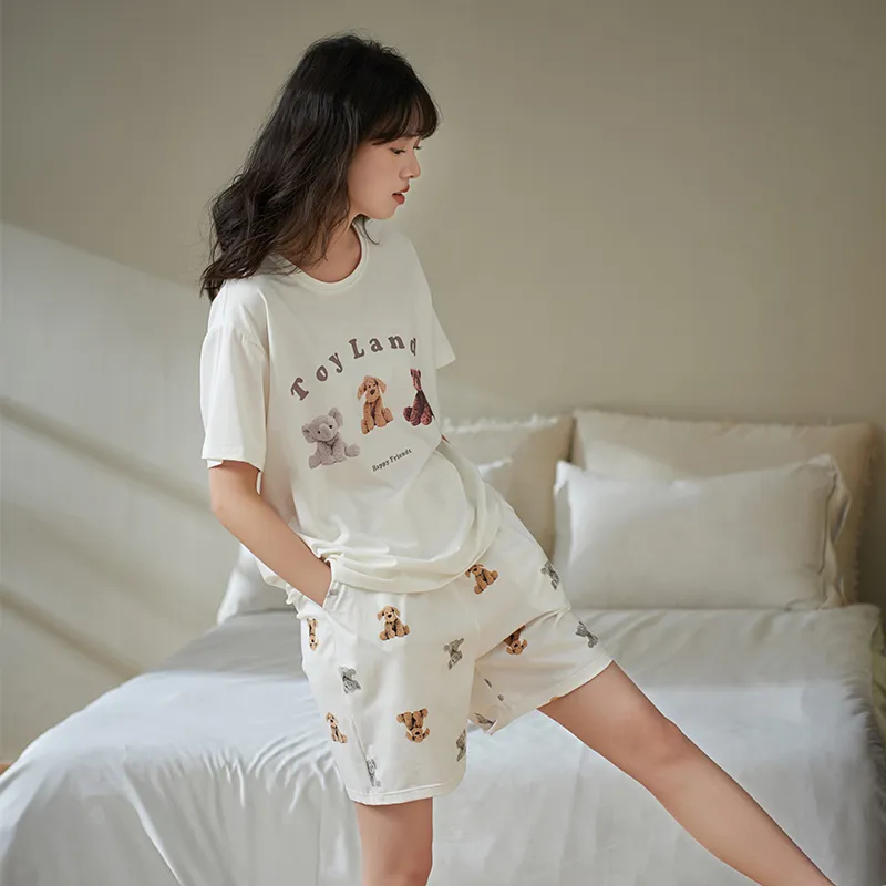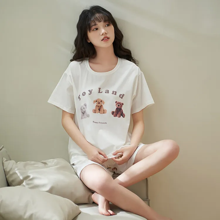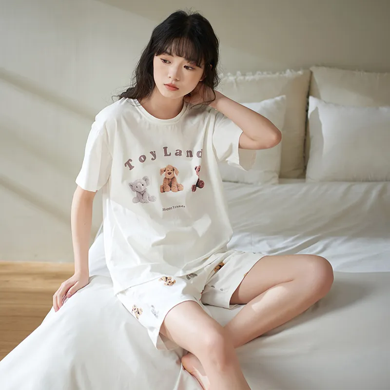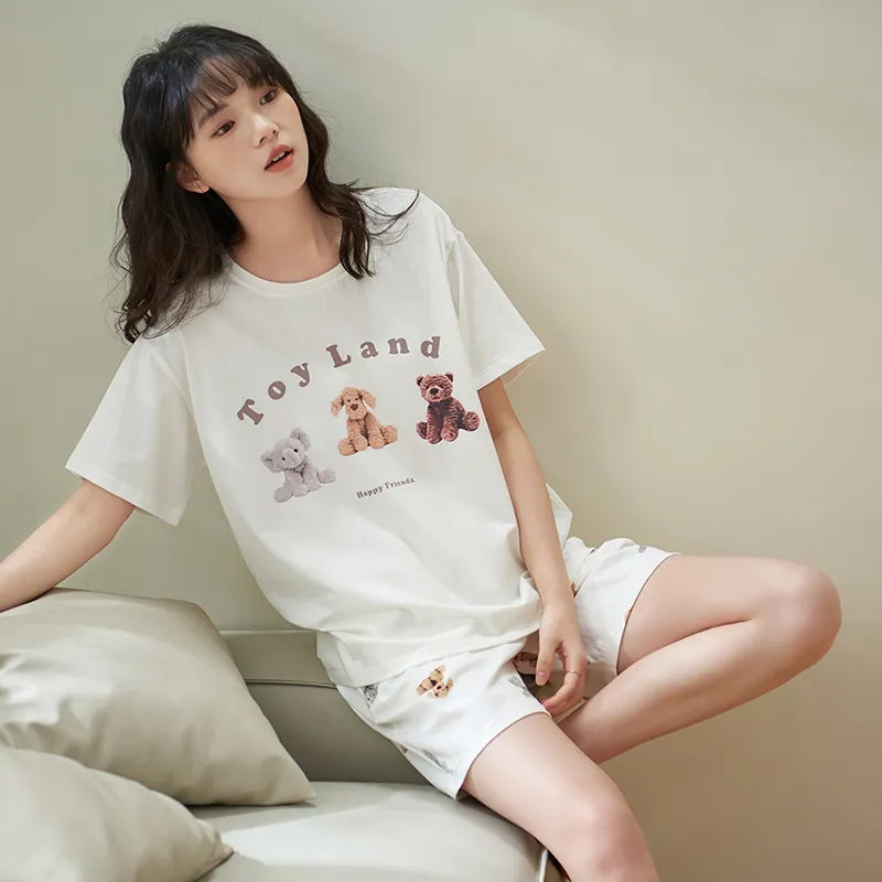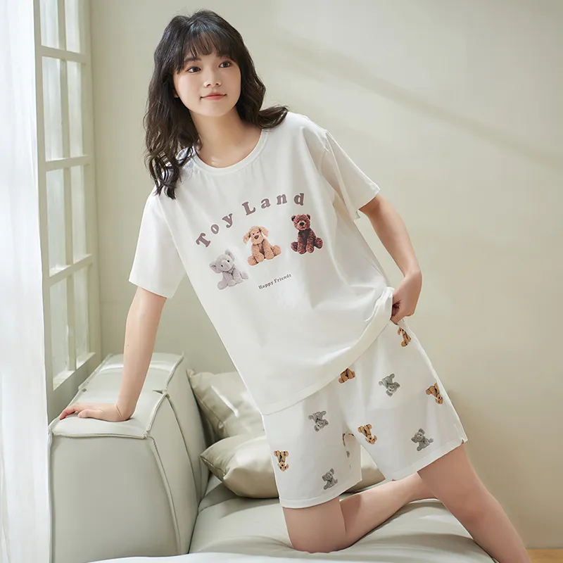 Sha Qian Пижамный комплект Летний Женский Белый