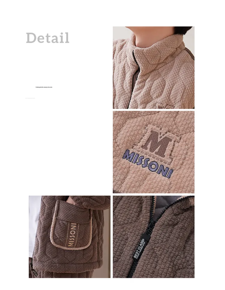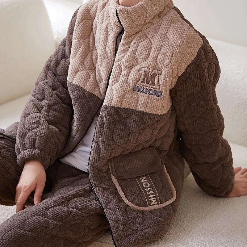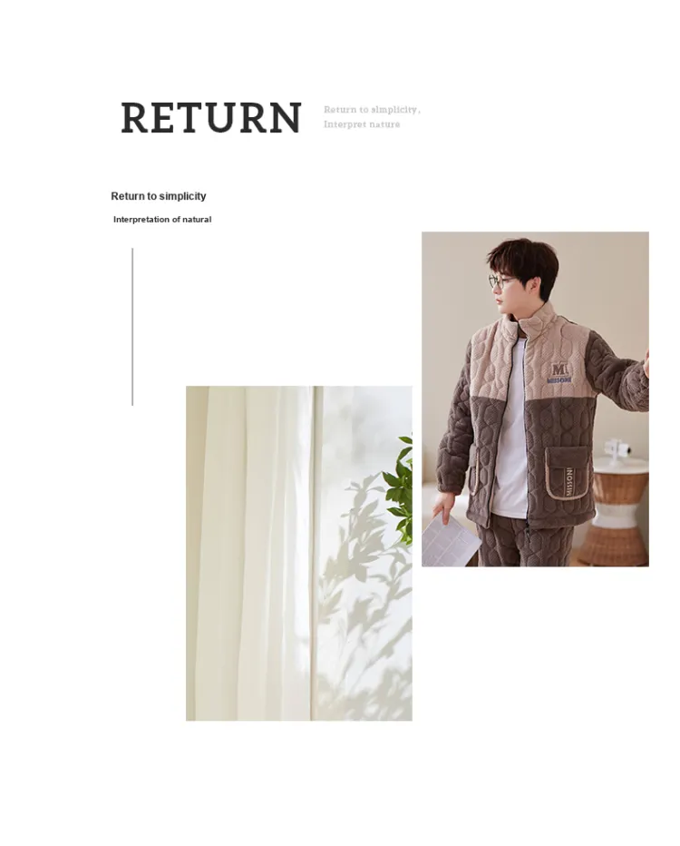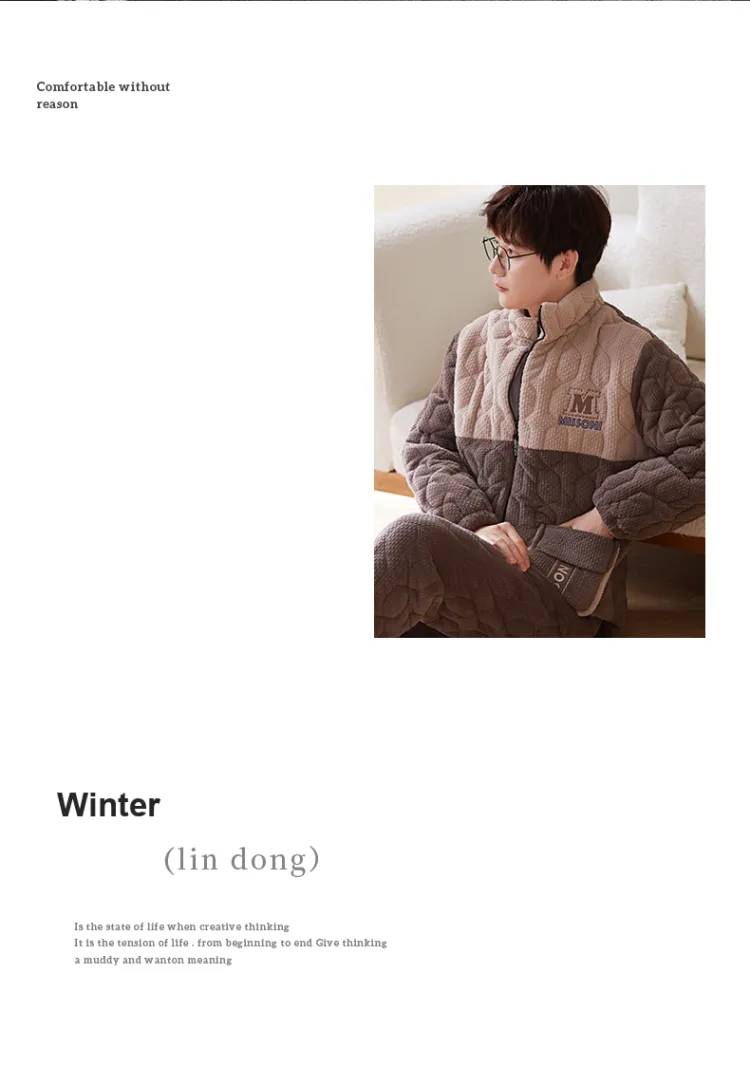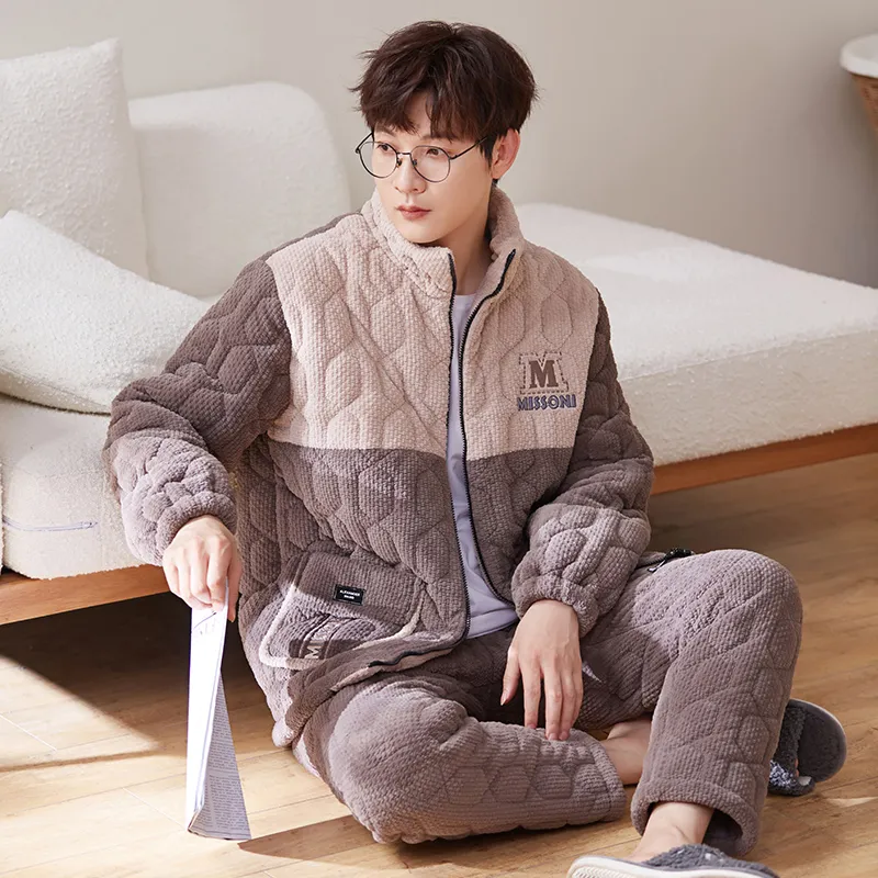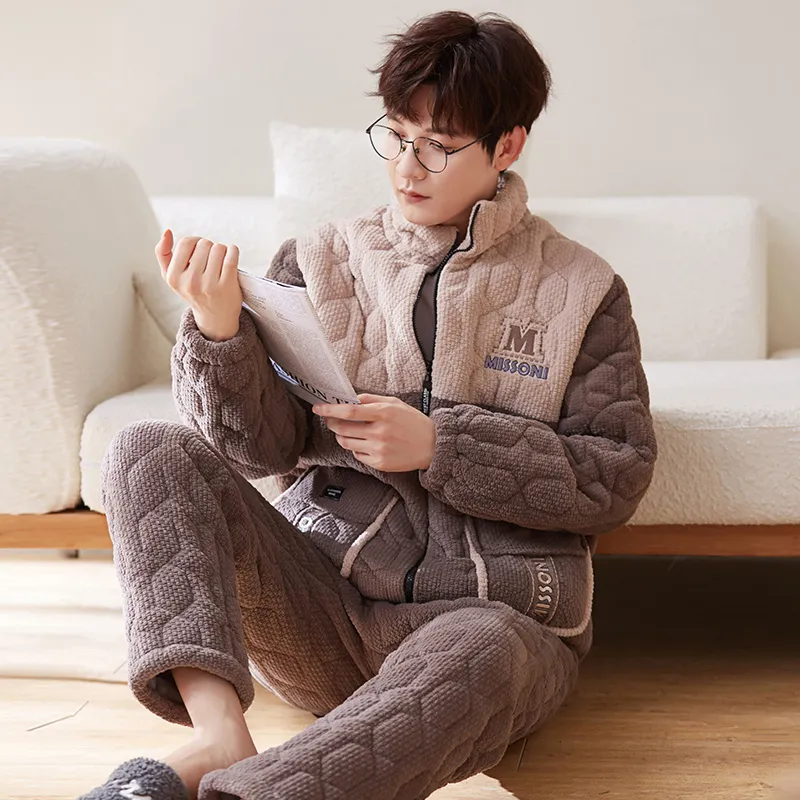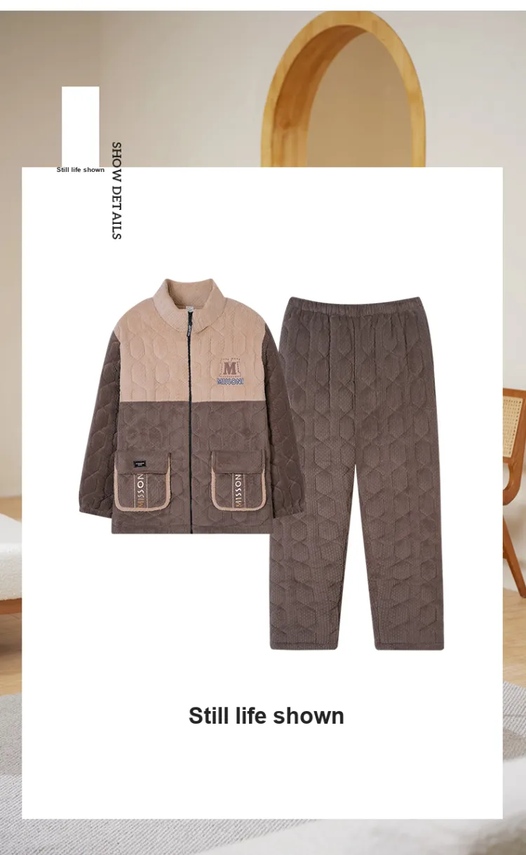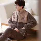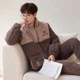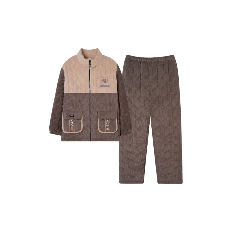Sha Qian Пижамный комплект Зимний Мужской Хаки Коричневый