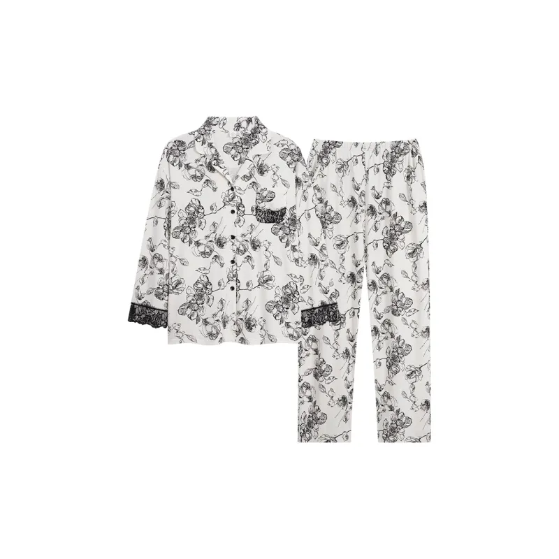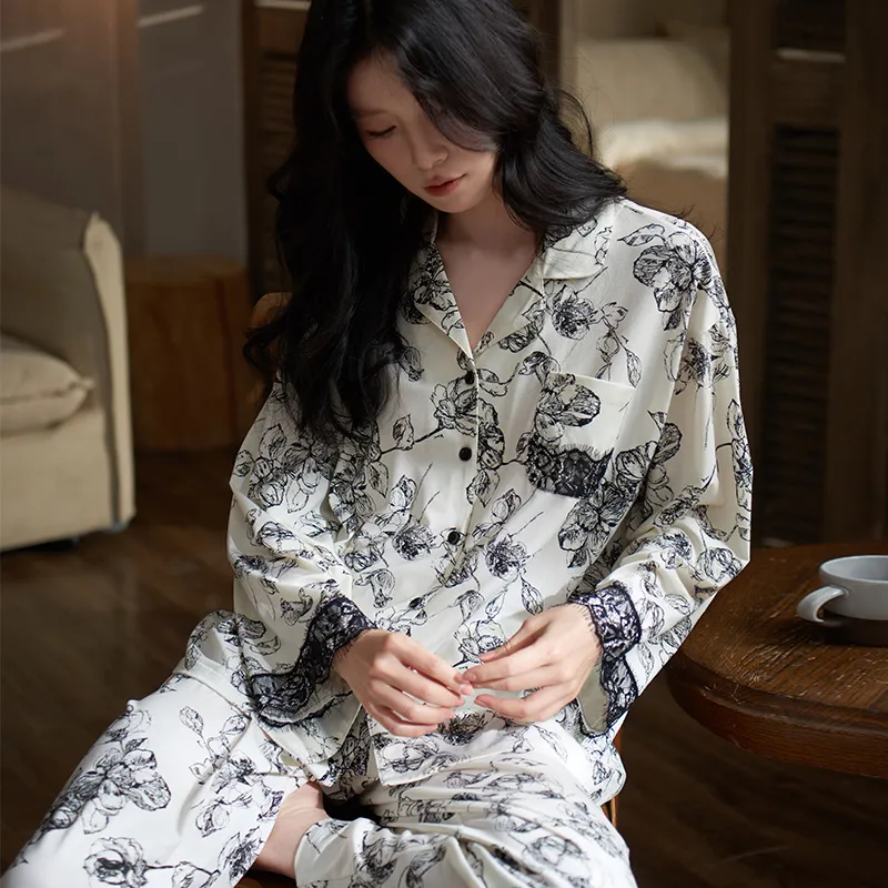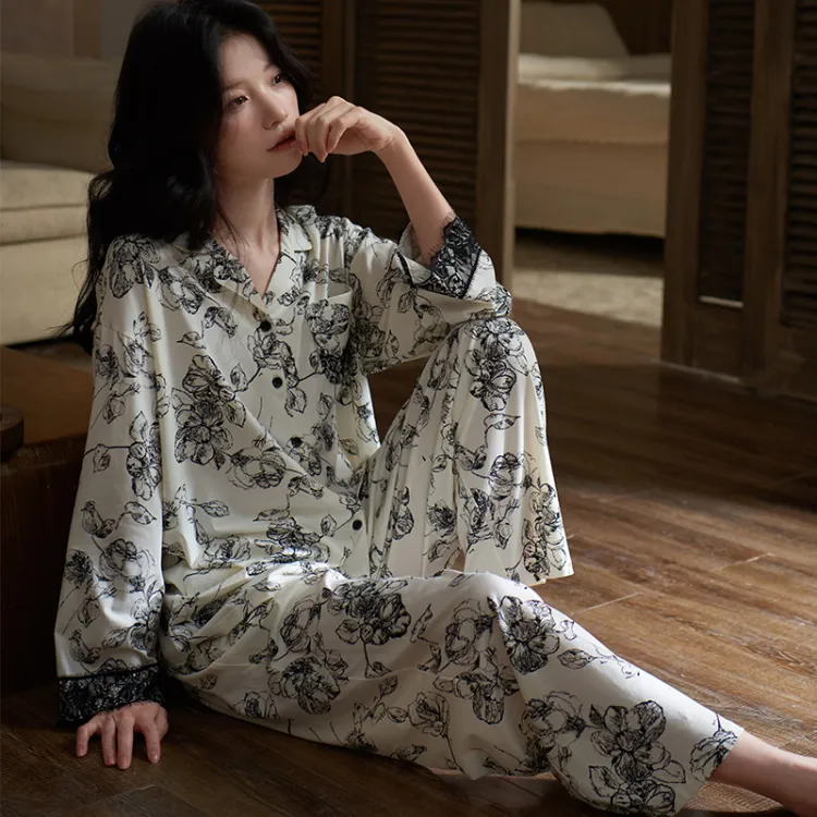 Sha Qian Пижамный комплект для женщин черный и белый