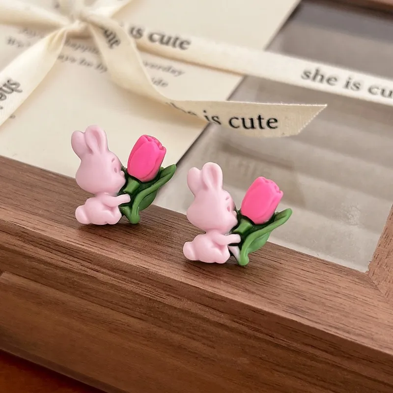 Кролик, предлагающий цветок, серьги-гвоздики