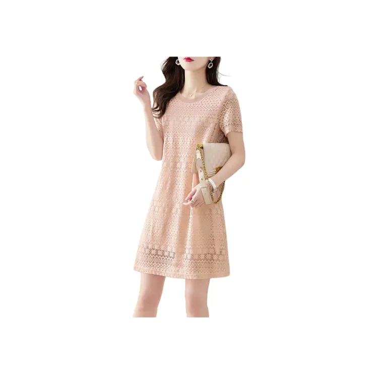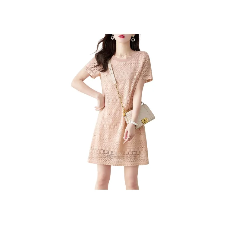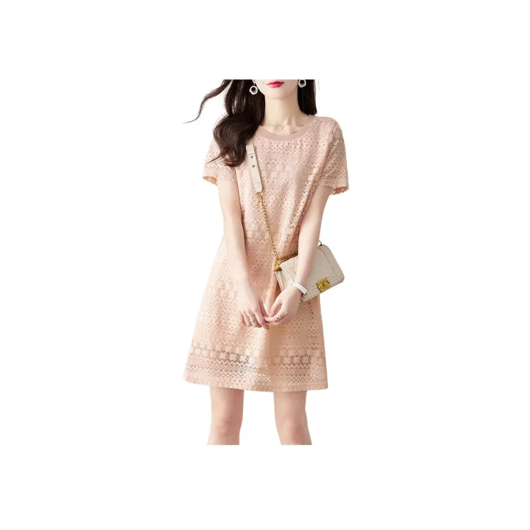 SHANGJING Короткий рукав Платье Женское Розовое