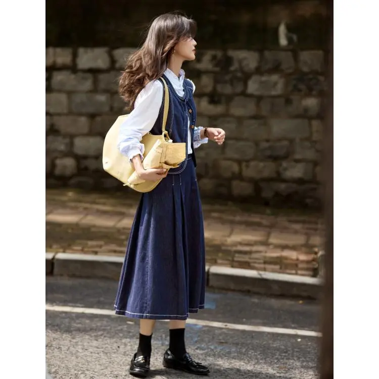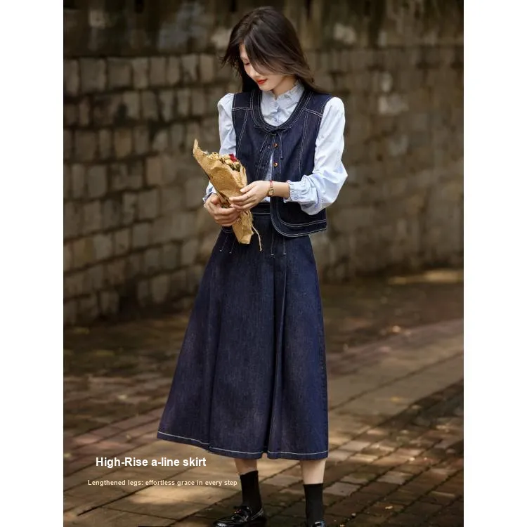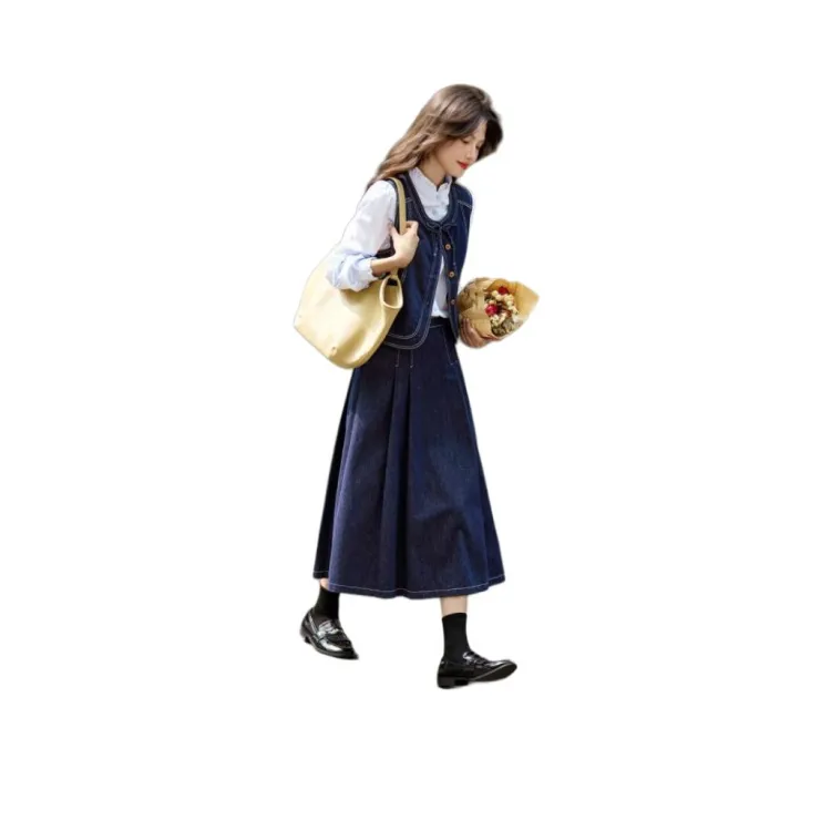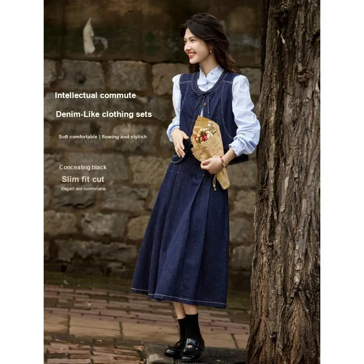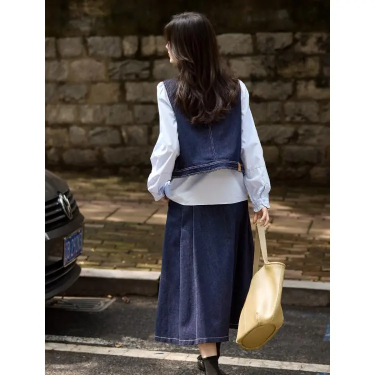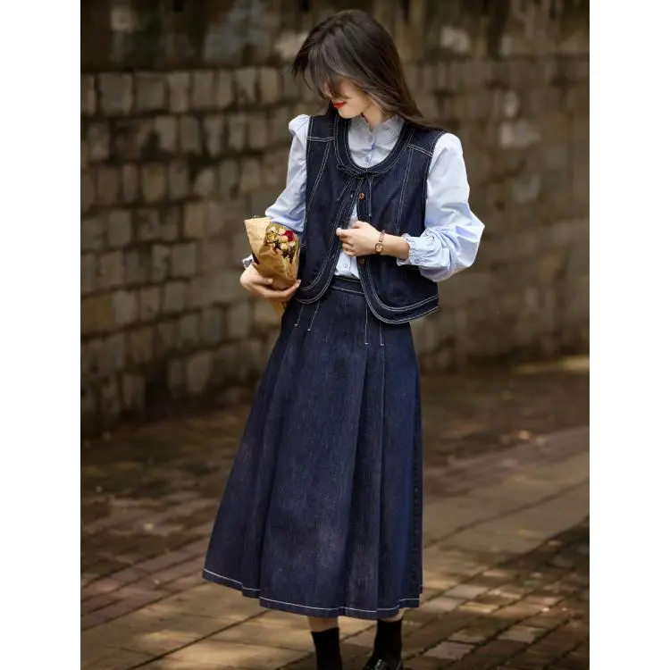 SHANGJING Джинсовый синий женский комплект с юбкой