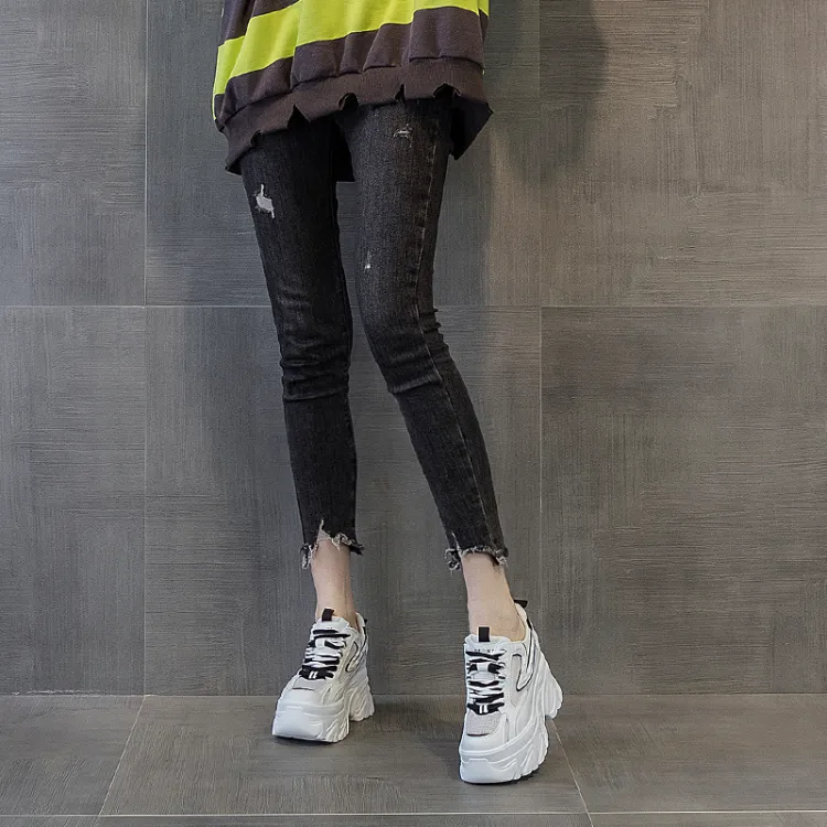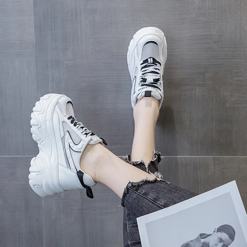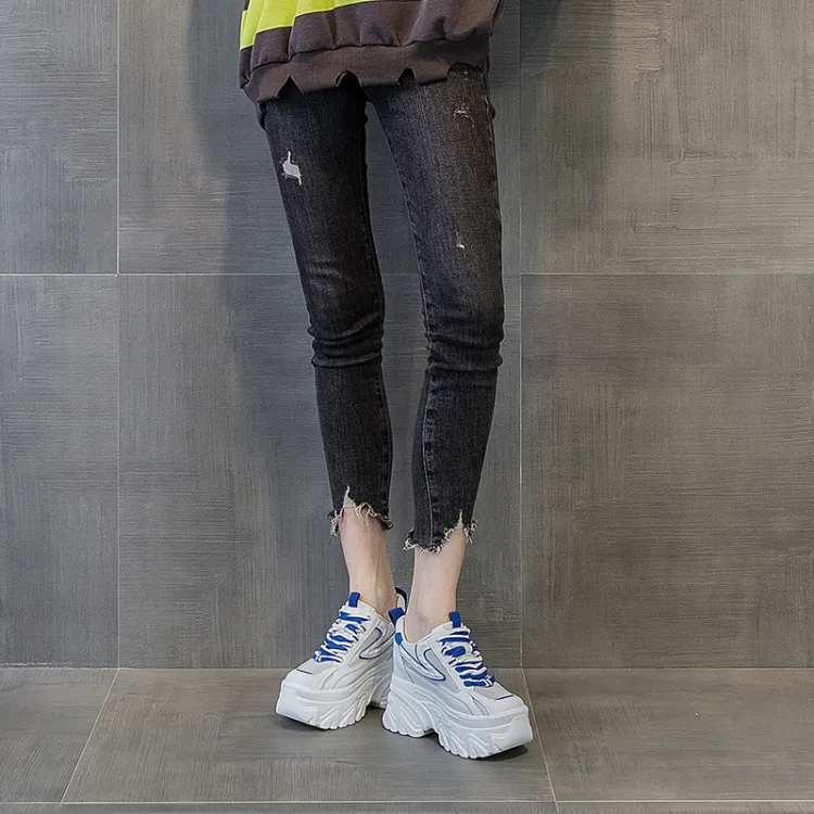 Shangjinni противоскользящие и износостойкие визуально увеличивают рост низкие топовые кроссовки с толстой подошвой женские