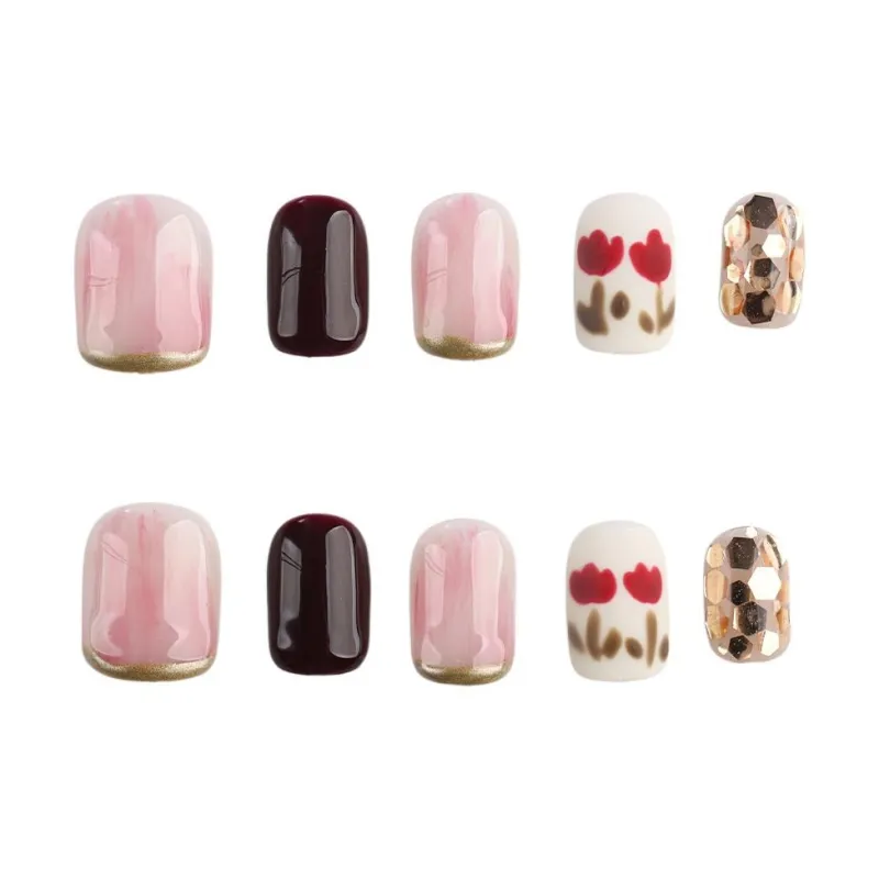 SHANGSHIQIN 2025 Осветляющий Кошачий глаз Модный False Nail Ручной работы Тюльпан Осветляющий 15mm Короткий ЛАДЬЯНКА Розовый Jump Цвет
