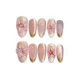 SHANGSHIQIN 2025 Spring 3D-эффект Ручной рисунок Осветляющий Фальшивый Ногтей 25 мм Миндально-розовый Однотонный