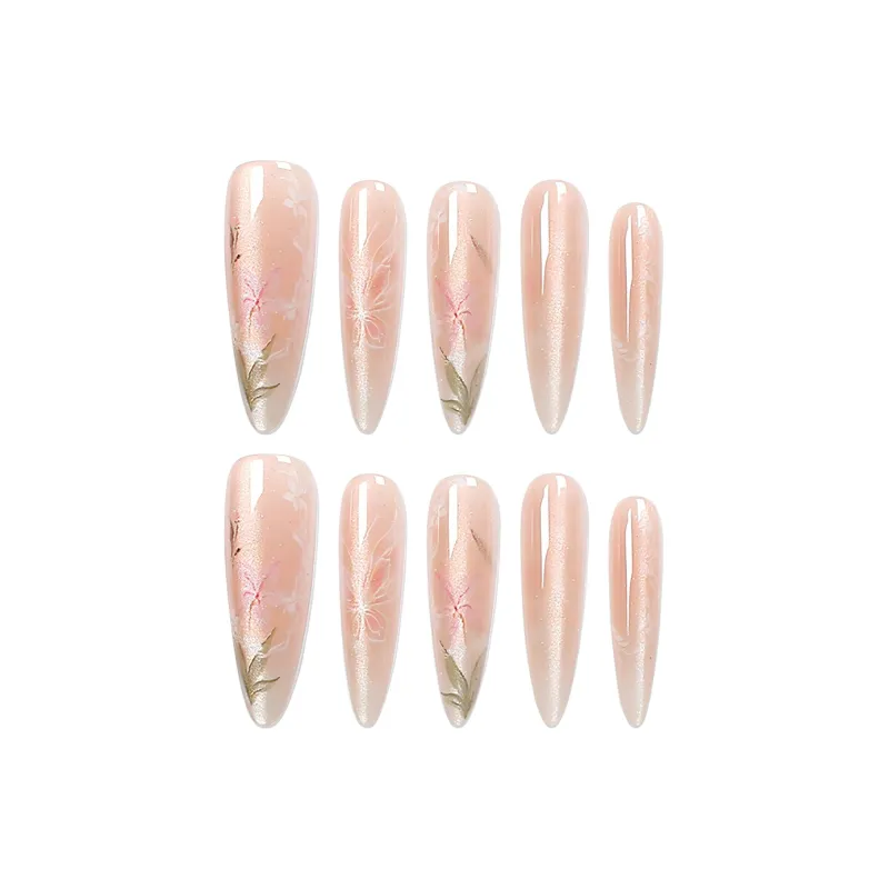 SHANGSHIQIN Китайский стиль Персик 'Ten Li Элегантность' Осветляющий Мягкий False Nail 25 мм Заостренный Тип Розовый Градиент