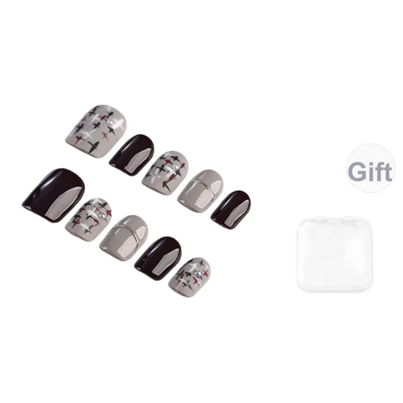 SHANGSHIQIN Минималистский стиль мода Элегантность Матовый False Nail Короткий LADDER Коричневый Jump Цвет 15мм