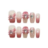 SHANGSHIQIN Sweet Heart 3D Эффект Бабочка Осветляющий Элегантность Французский Маникюр 20мм Короткий ЛЕВИЙ Розовый Градиент
