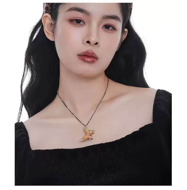 Черное ожерелье с бабочкой
