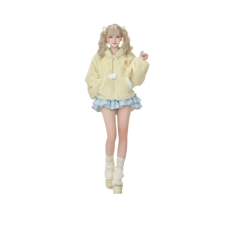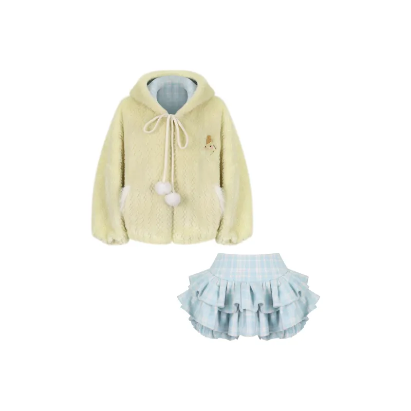 Комплект одежды (Плюшевое пальто + многослойная юбка)
