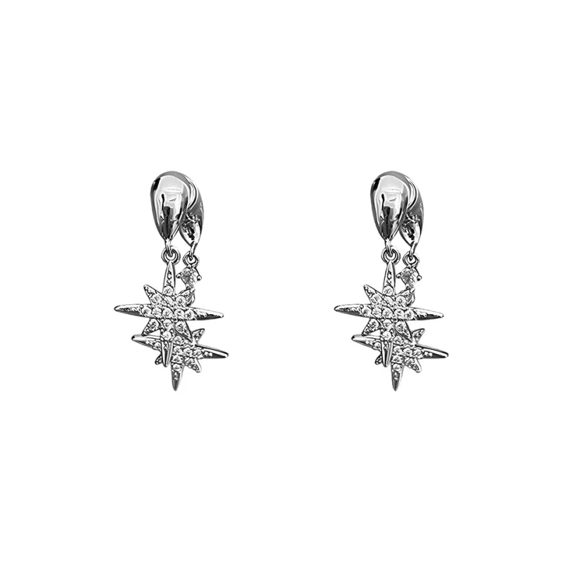 Серьги-гвоздики с цирконием в форме звезды, дорожка, 1 пара (серебряные)