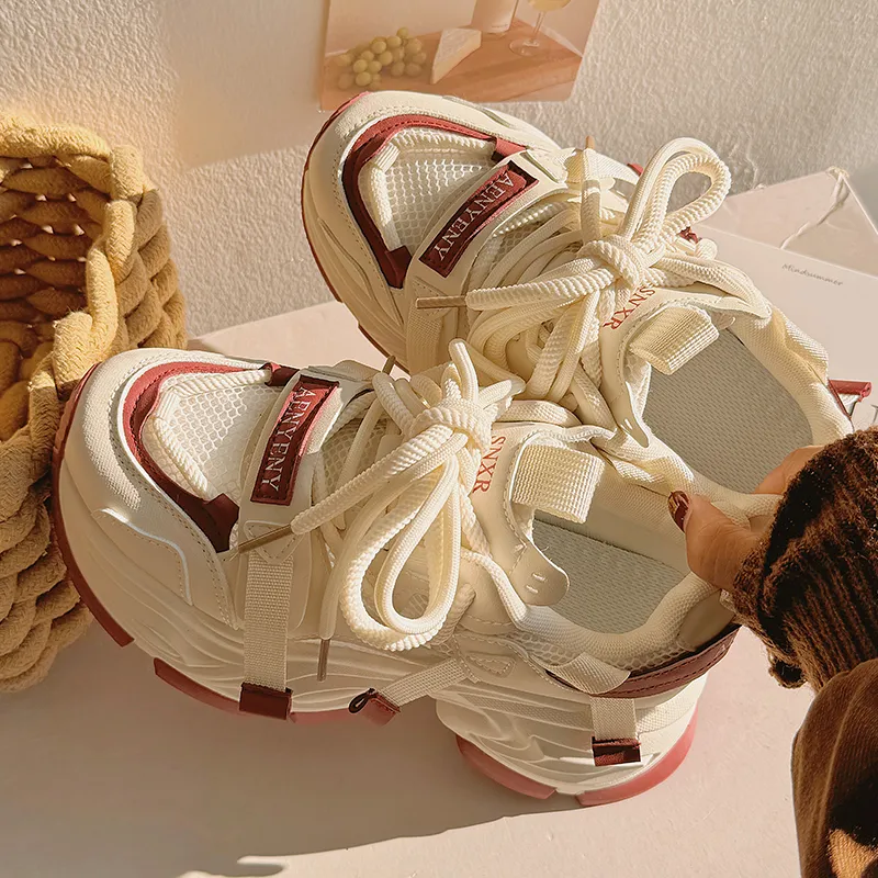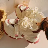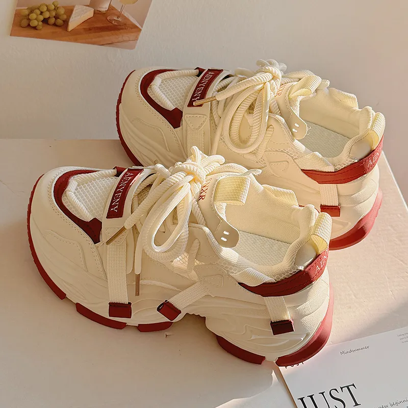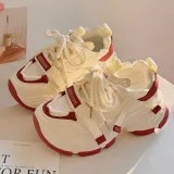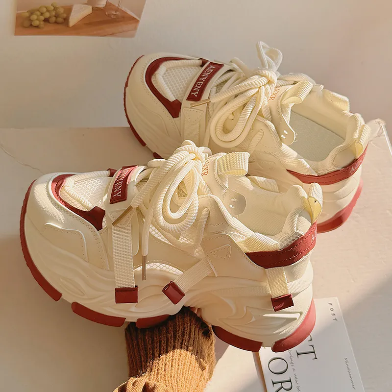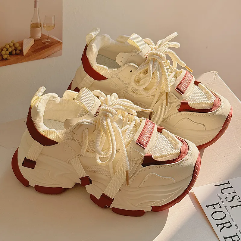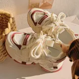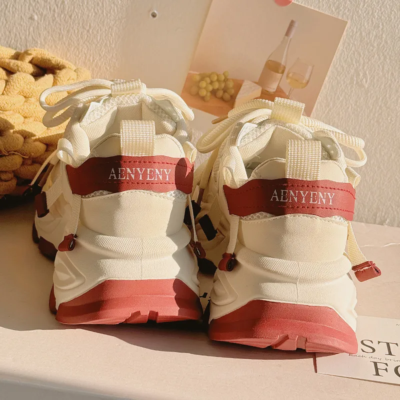 Shen Linsen Slip-resistant Abrasion-resistant Low Top Skateboard Shoes Women's Beige Red Шен Линсен Противоскользящие Износостойкие Низкие Кроссовки для Скейтбординга Женские Бежево-красные