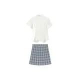 Линен Узор Юбка (39CM) + Утяжка на талии Белый укороченный-рукав + Галстук-бабочка
