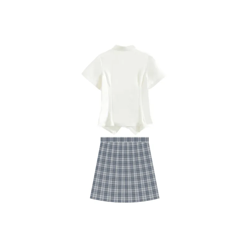 Линен Узор Юбка (42CM) + Облако Короткий рукав + Галстук-бабочка