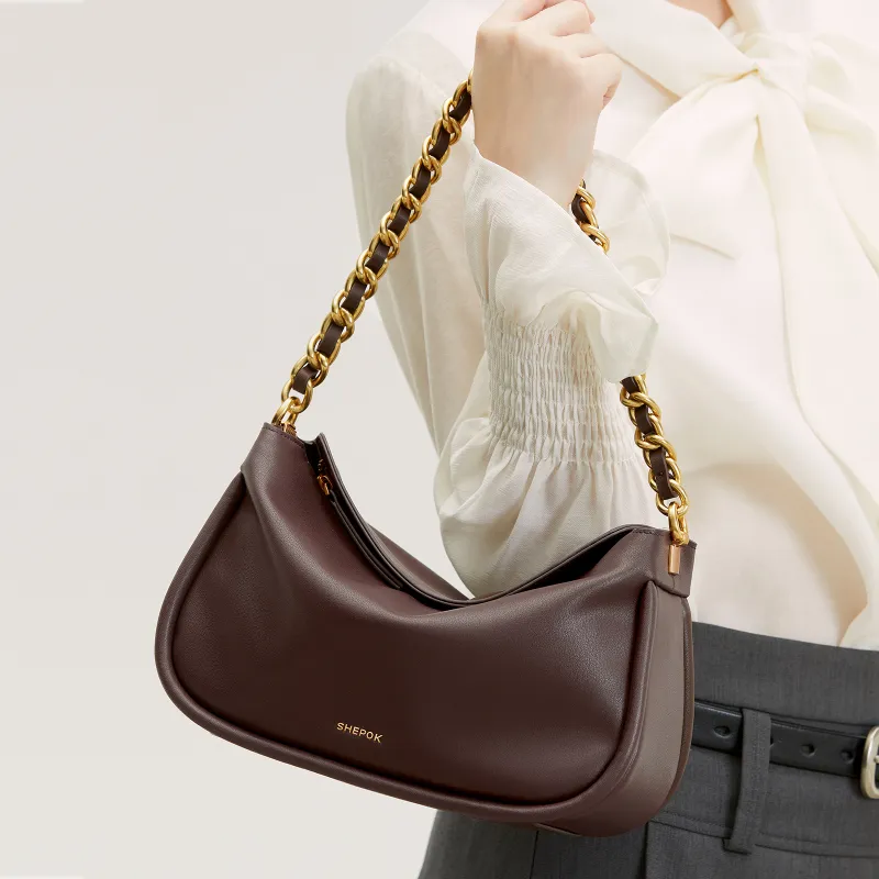SHEPOK Корова Кожа Пельменная Сумка Портативная Сумка через плечо Сумка через плечо Стандартная Женская Кофейно-коричневая Черная Шоколадная