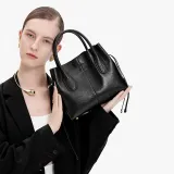 SHEPOK Сумка из крупнозернистой текстуры коровьей кожи тоут-сумка сумка через плечо среднего размера женская черная