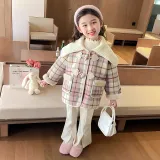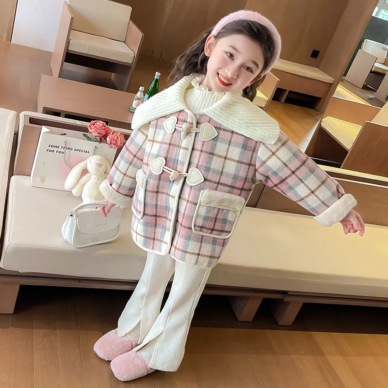 SHIBU Little Demon Пряжа Ожерелье-чокер Розовая клетка Пальто KIDS Куртки
