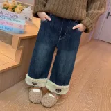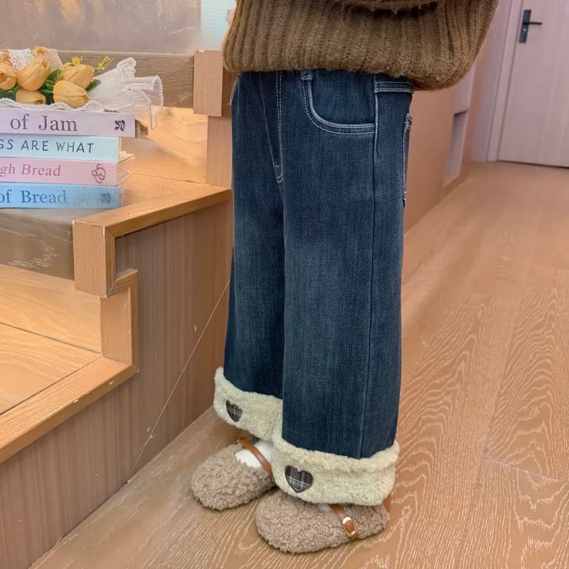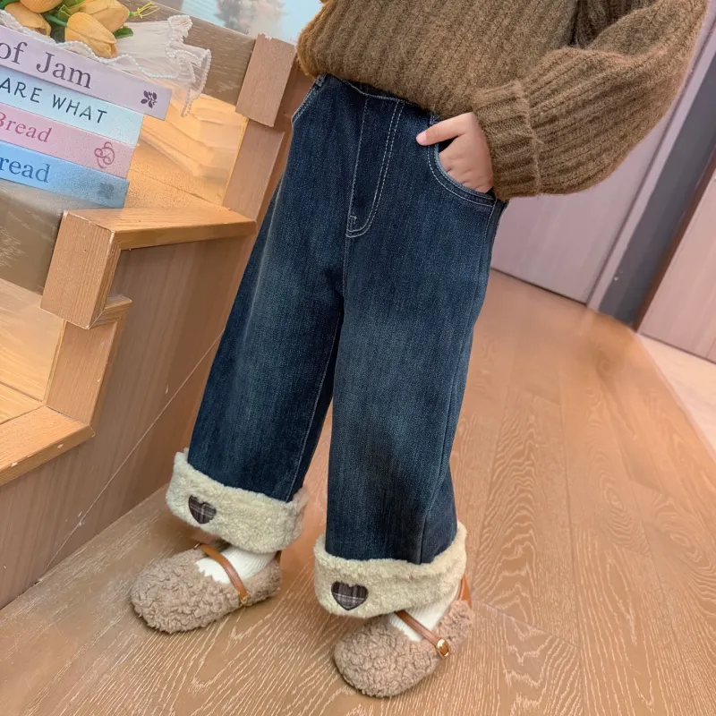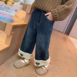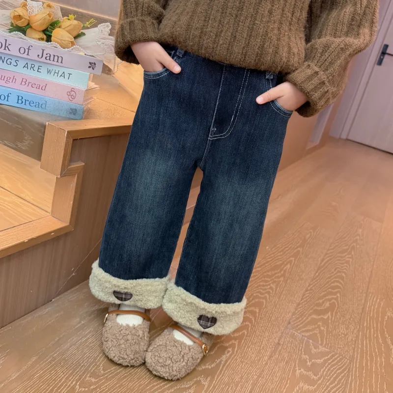 SHIBU Rainbow Elephant D2536 Heart Embroidery С флисовой подкладкой Джинсы Изображение Цвет KIDS Джинсы