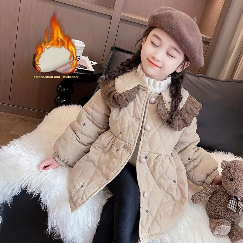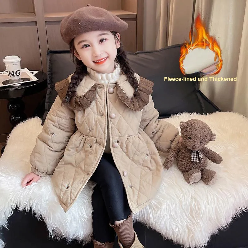 SHIBU Радужный Слон D2349 Трикотажная ткань Кружевная отделка Хлопок Кардиган In Хаки KIDS Утеплённые куртки