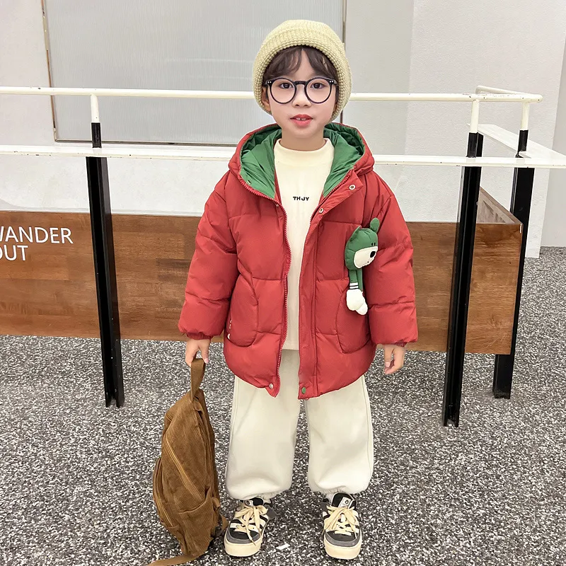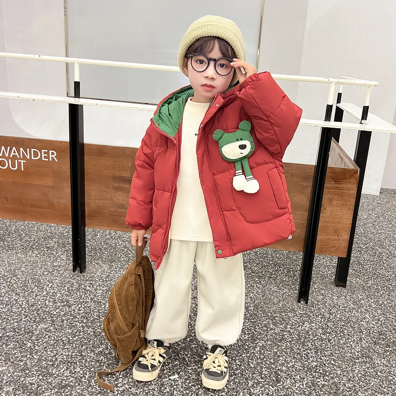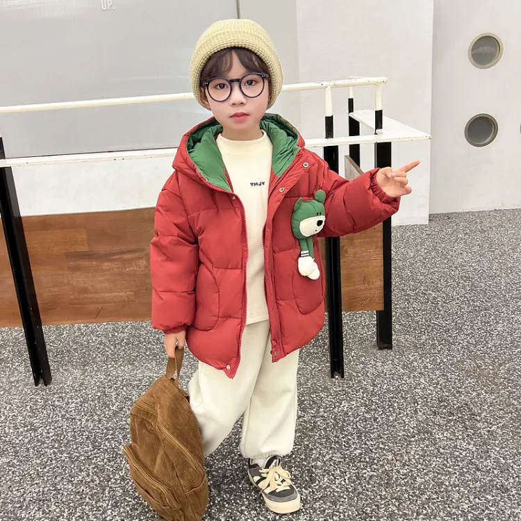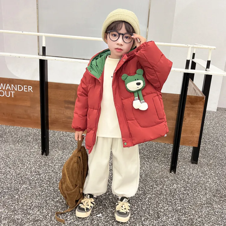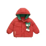SHIBU Лимонная глазурь Зеленый медвежонок с ушками Хлопковый пуховик Красный Для дошкольников Утеплённые куртки