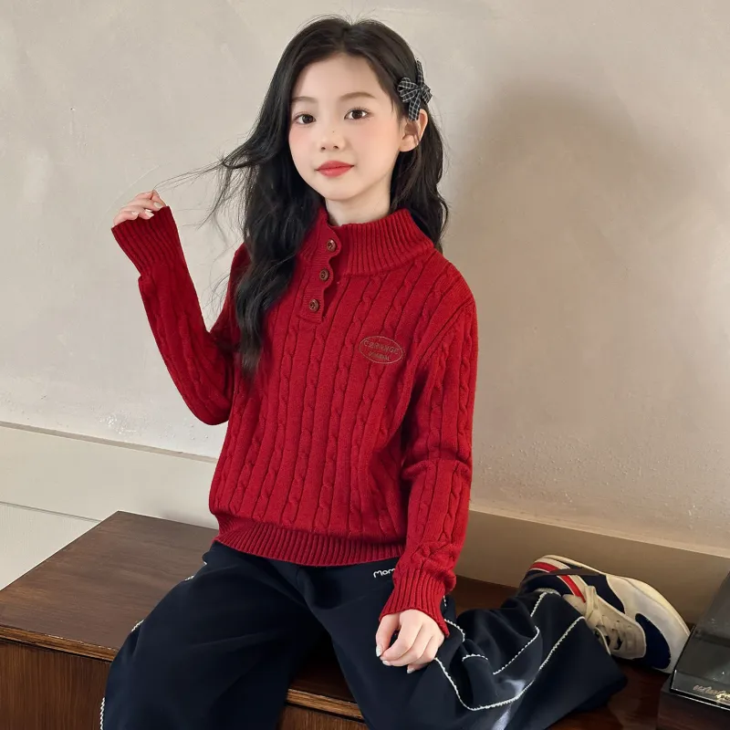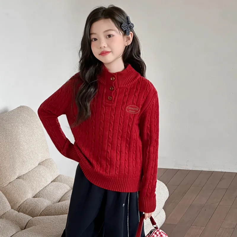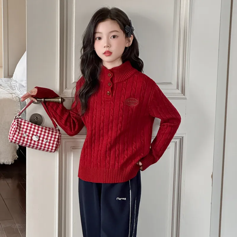 SHIBU Luo Барби 1718 Crochet Пуговицы Свитер Красный Пре-школьные Свитеры