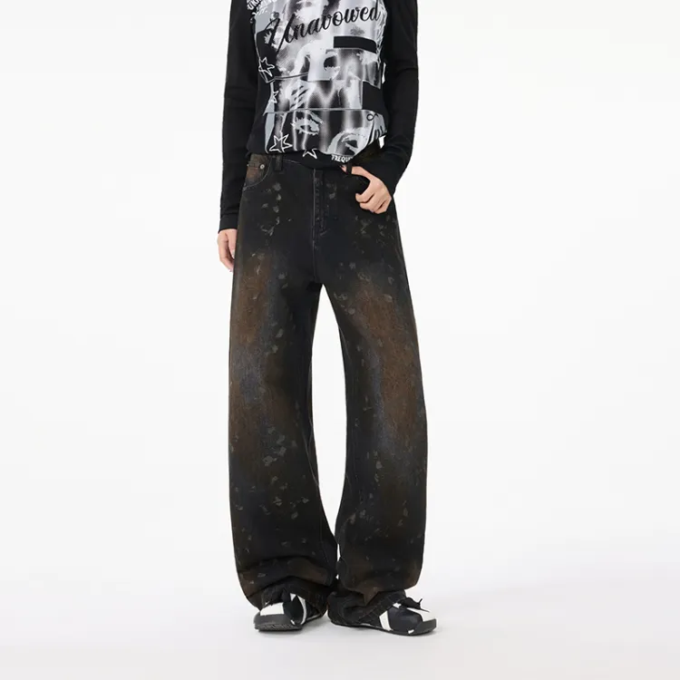 SHIGEYIXIANSHENG Dirty Грязь Черный Унисекс Джинсы