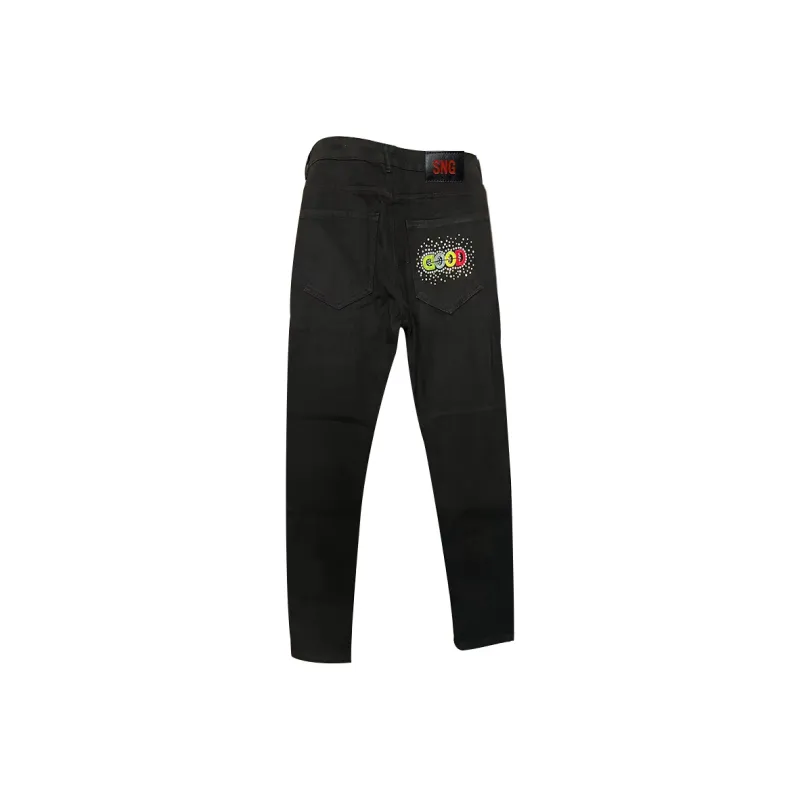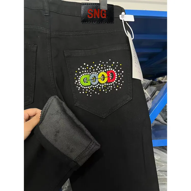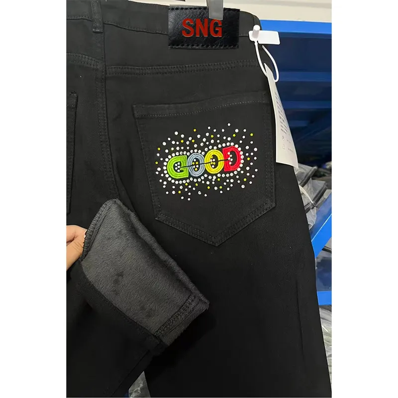 SHIJINGZU Черный [10 000 игл вышивка флис с подкладкой] Нет логотип унисекс джинсы