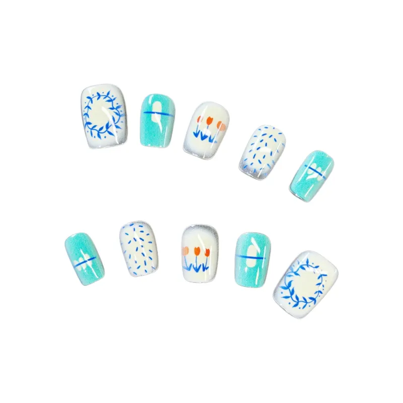 SHITIAN Циановый Impression Короткий Квадрат Зеленый Однотонный Милый