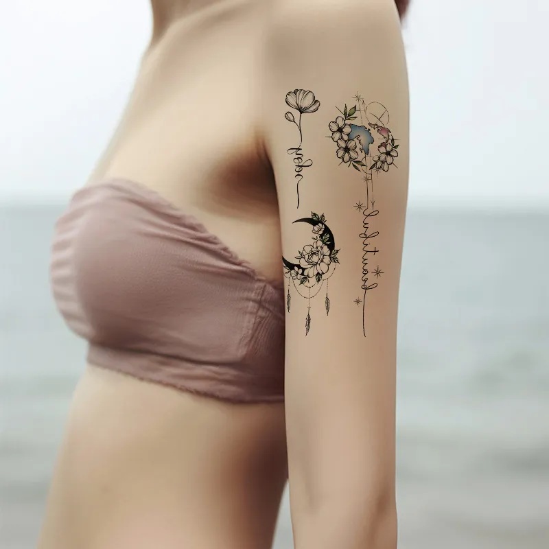 SHITIAN Цветочный дизайн Dance Entwined с The Луна Многоцветный Tattoo Стикер